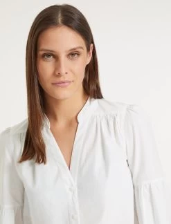 Erin Silk Sleeveless Funnel Neck Blouse – Navy Spiral Clouds Print