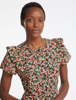 Maisie Organic Cotton Seersucker Midi Dress – Blue White Check