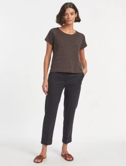Julie Cotton Round Neck Sleeveless Jumper – Navy White Stripe