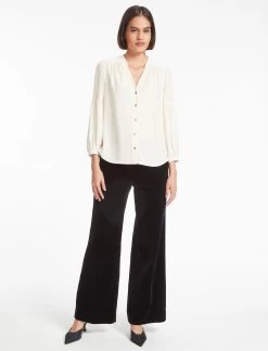 Erin Silk Sleeveless Funnel Neck Blouse – Navy Spiral Clouds Print