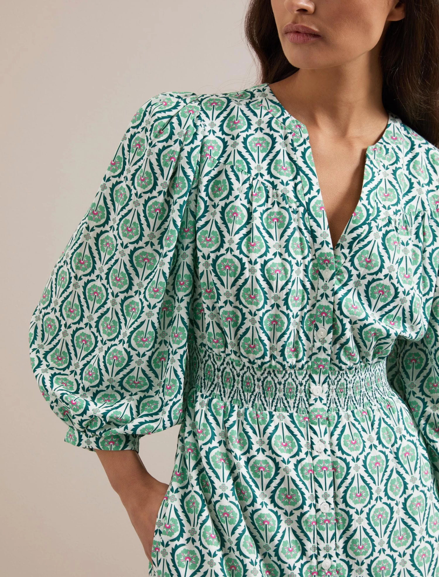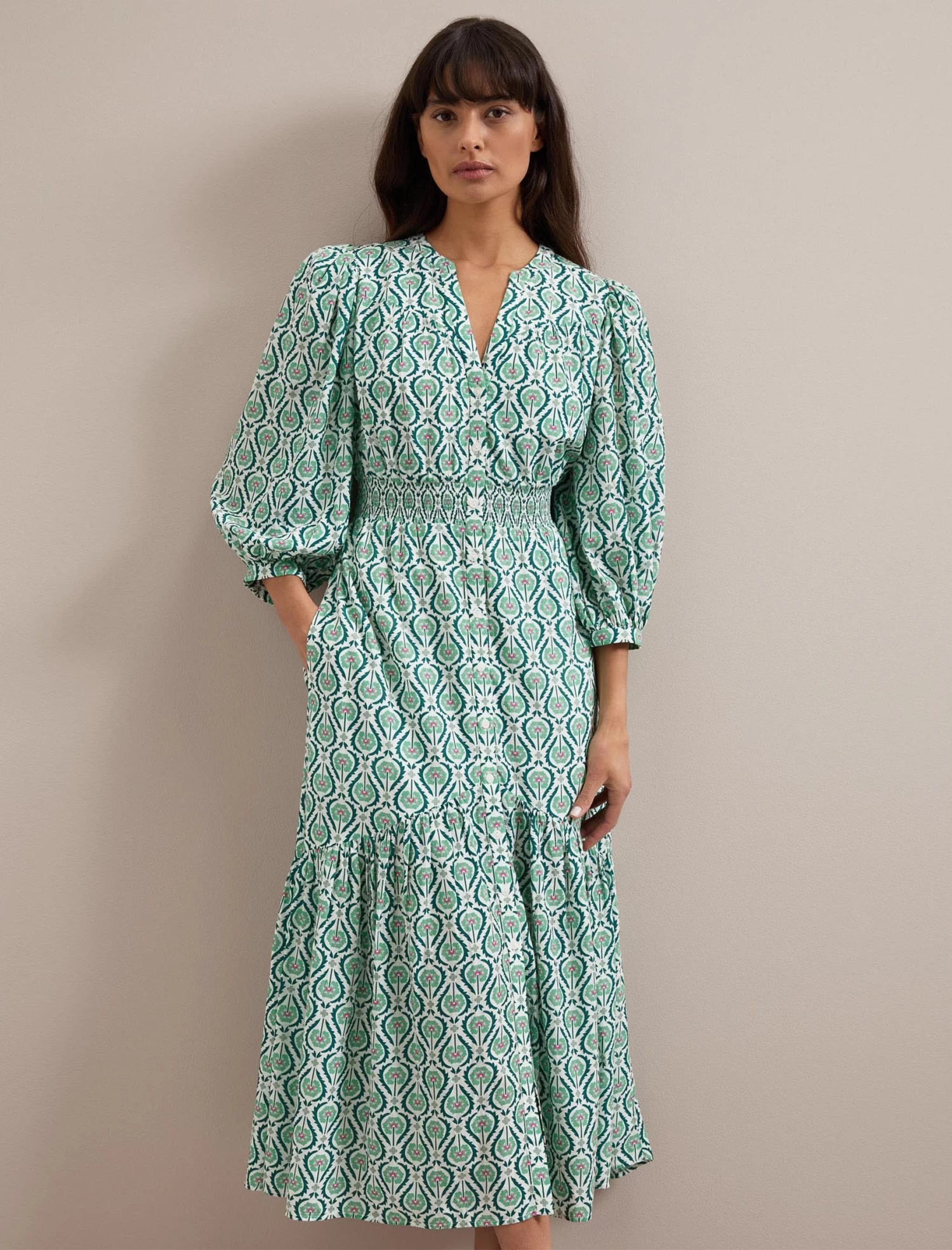 Cut from soft, sustainable cotton viscose voile, Aspen is a beautiful summer day dress you will wear on repeat. Machine washable and partly lined to prevent transparency, it has the same flattering V-neck and blouson sleeve as our best-selling Ella shirt, a shirred elasticated waist and dipped hem making it as easy to wear as it is to look after.