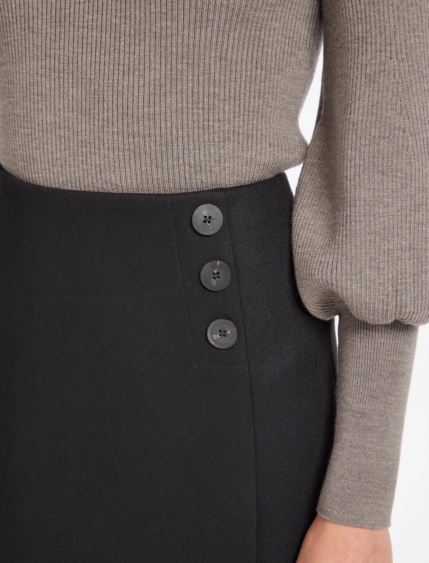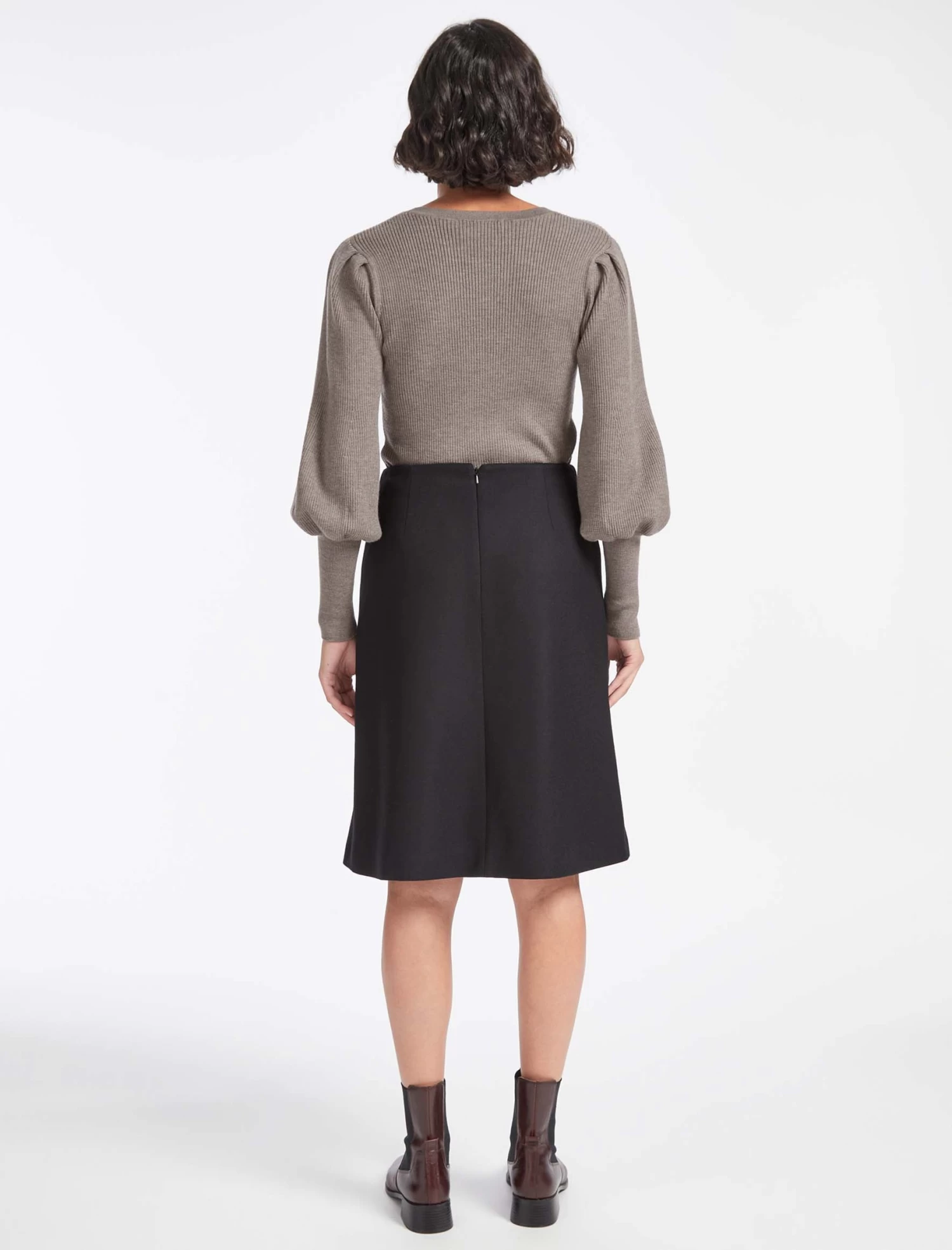 An elegant knee length skirt, Audrey offers a feminine take on the tailoring trend. It’s cut from a felted wool in a flattering A-line silhouette with smart summary detailing. Style with a crisp shirt and slender heel.