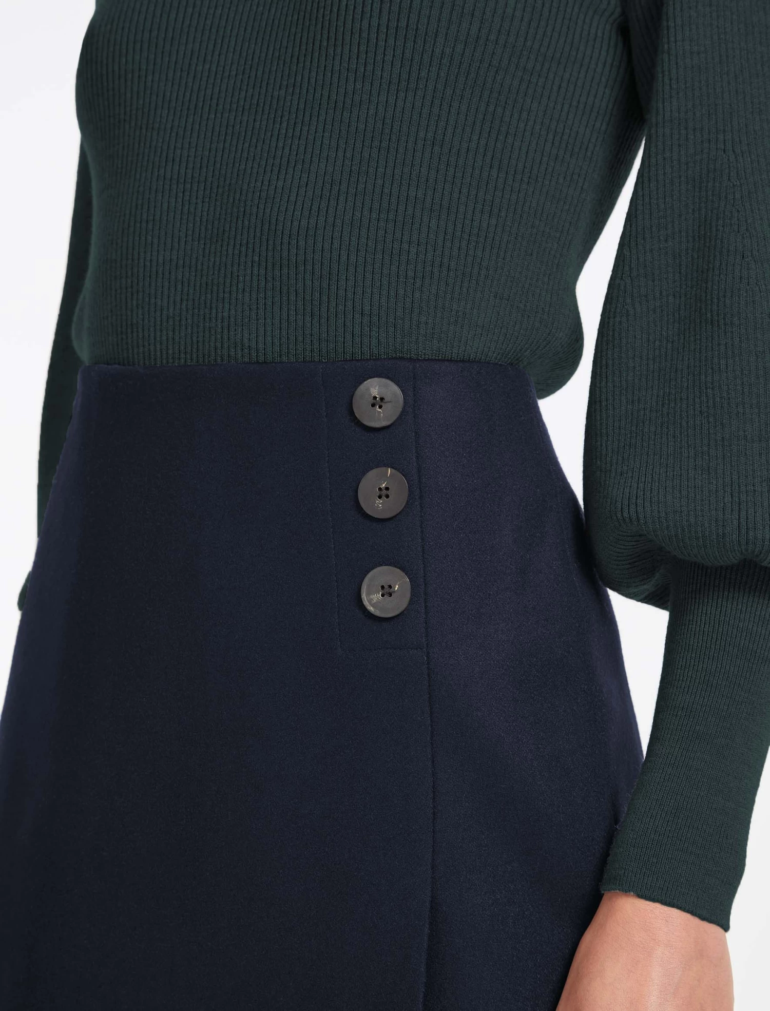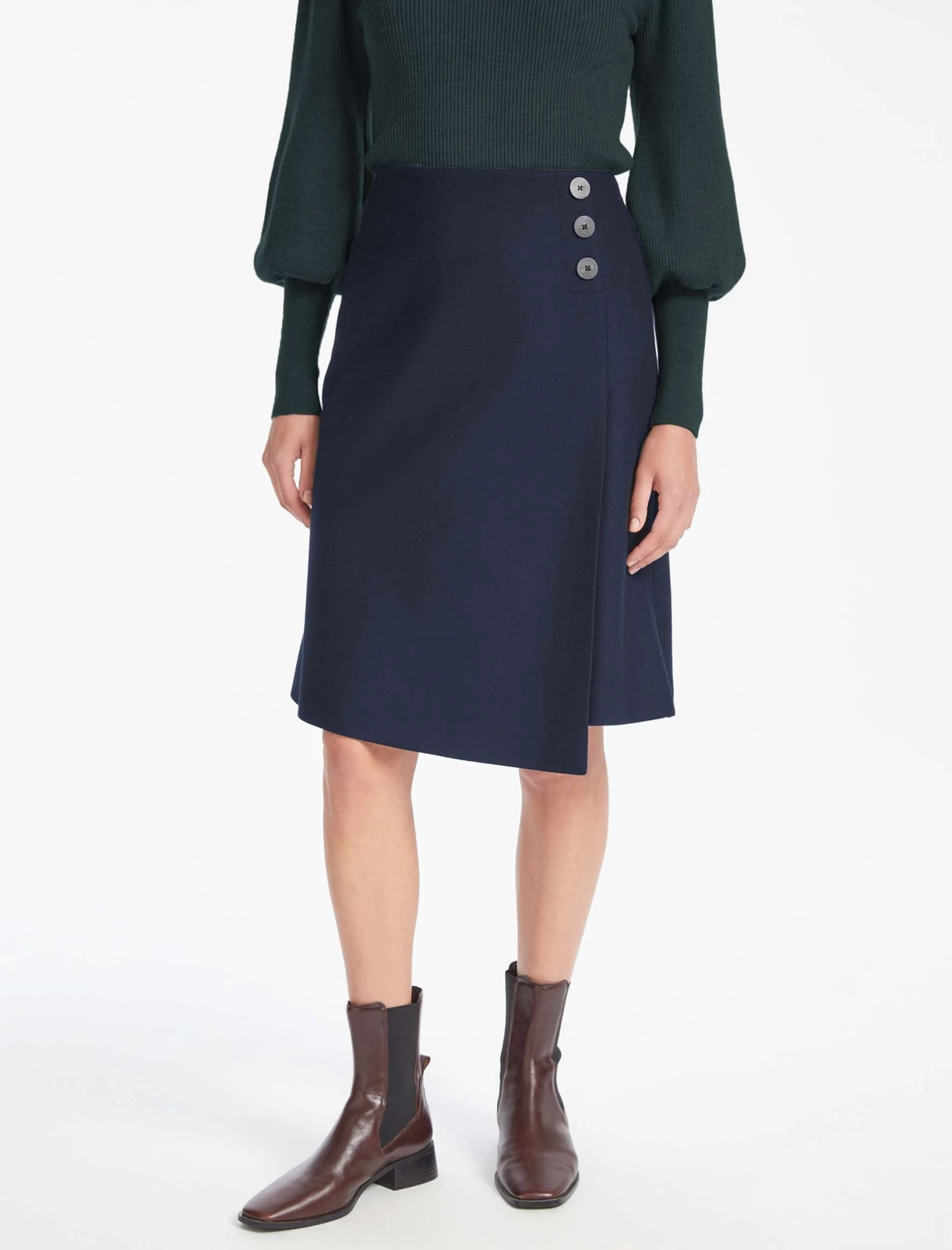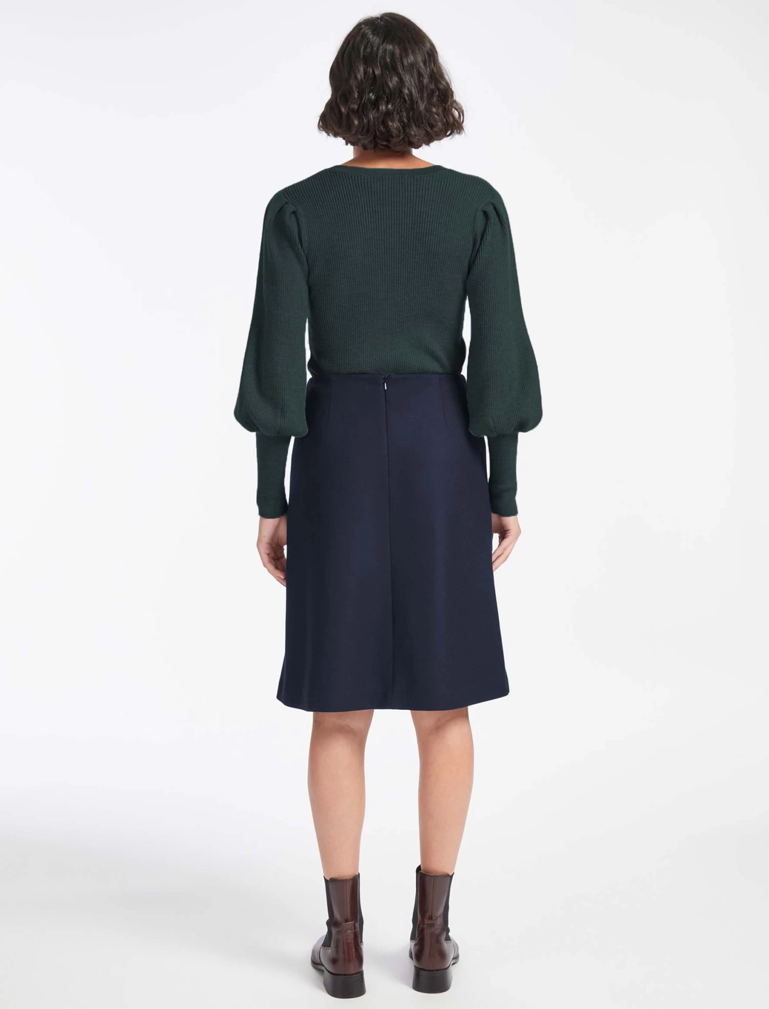 An elegant knee length skirt, Audrey offers a feminine take on the tailoring trend. It’s cut from a felted wool in a flattering A-line silhouette with smart summary detailing. Style with a crisp shirt and slender heel.