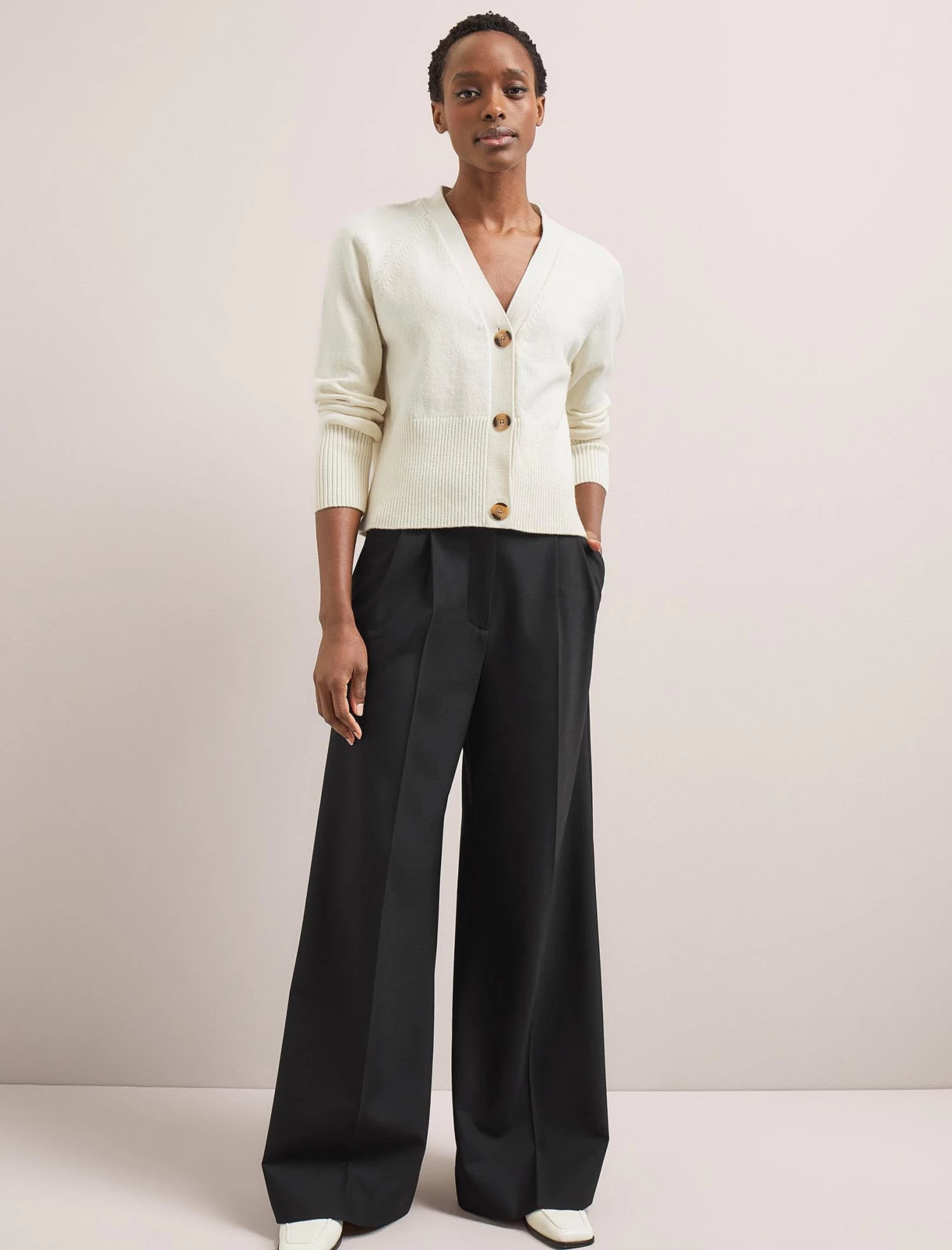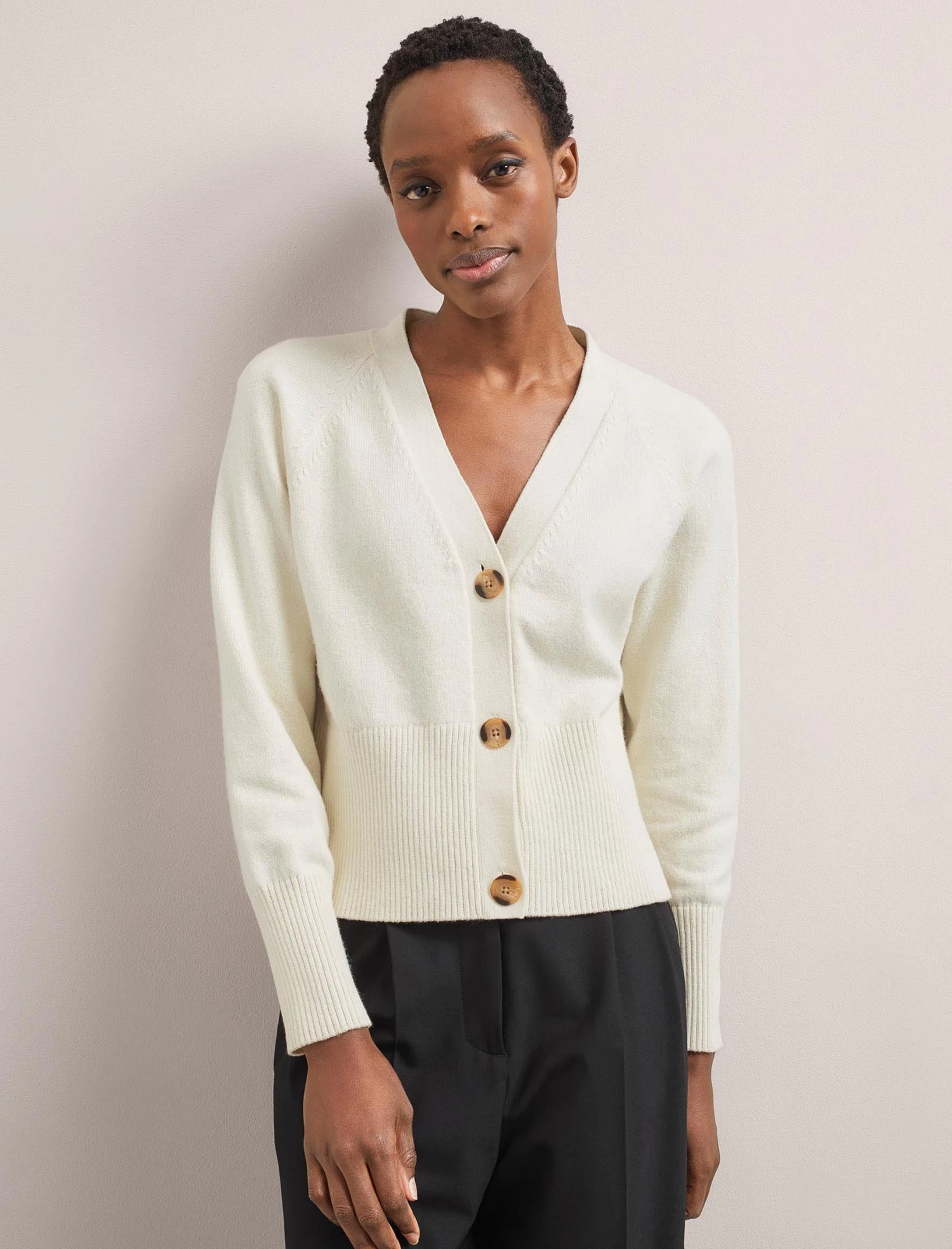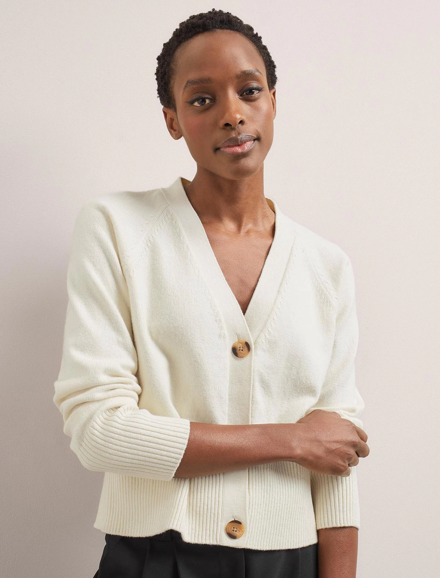 The beauty of the Caro cardigan is the carefully considered low-but-not-too-low V-neckline, meaning it can be worn layered over a tee but also looks great with nothing underneath. The boxy fit and shorter length is super flattering when paired with a skirt or trouser and the cool cotton-merino blend makes it a relaxed, yet elevated year-round staple.