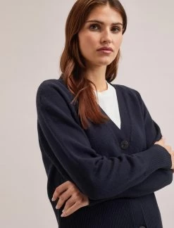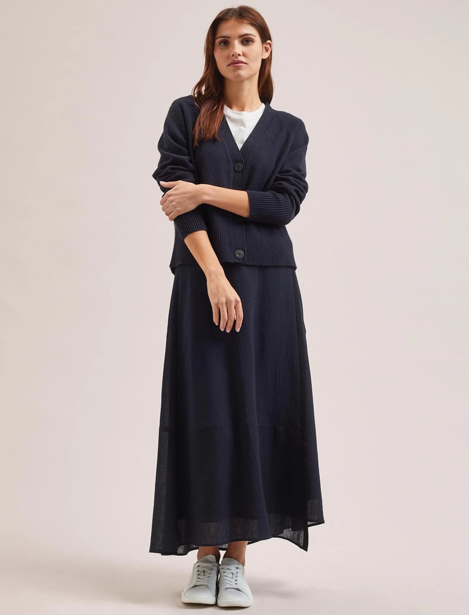 The beauty of the Caro cardigan is the carefully considered low-but-not-too-low V-neckline, meaning it can be worn layered over a tee but also looks great with nothing underneath. The boxy fit and shorter length is super flattering when paired with a skirt or trouser and the cool cotton-merino blend makes it a relaxed, yet elevated year-round staple.
