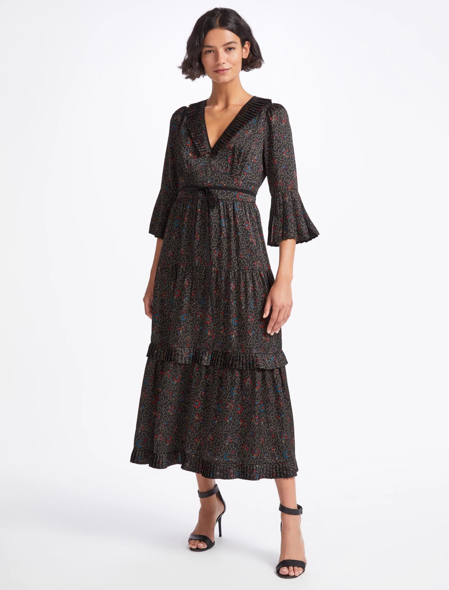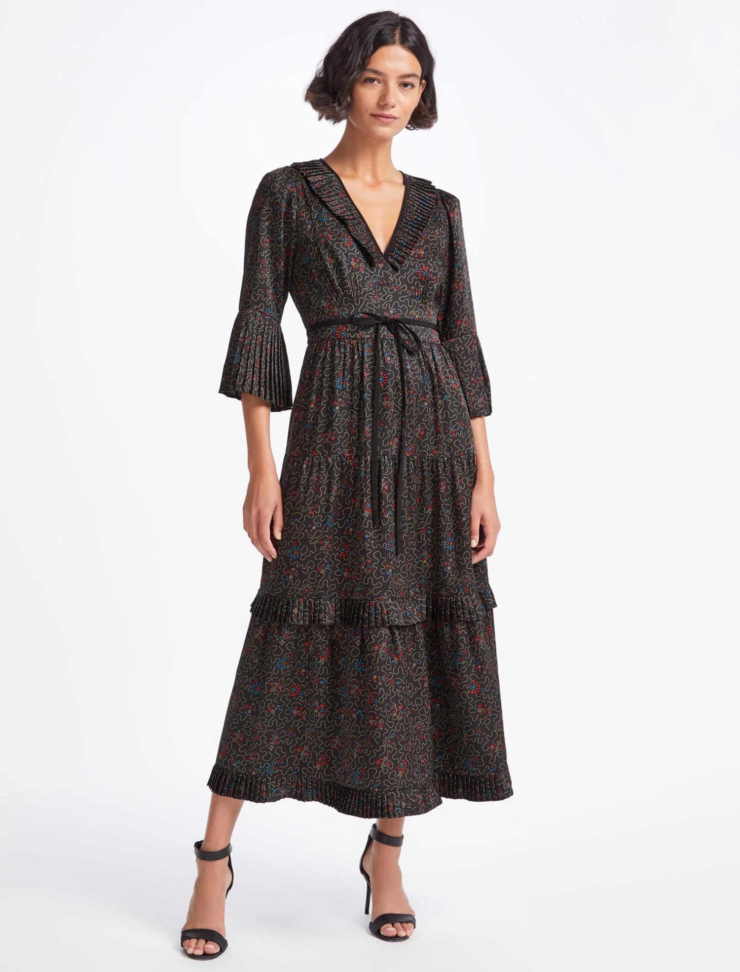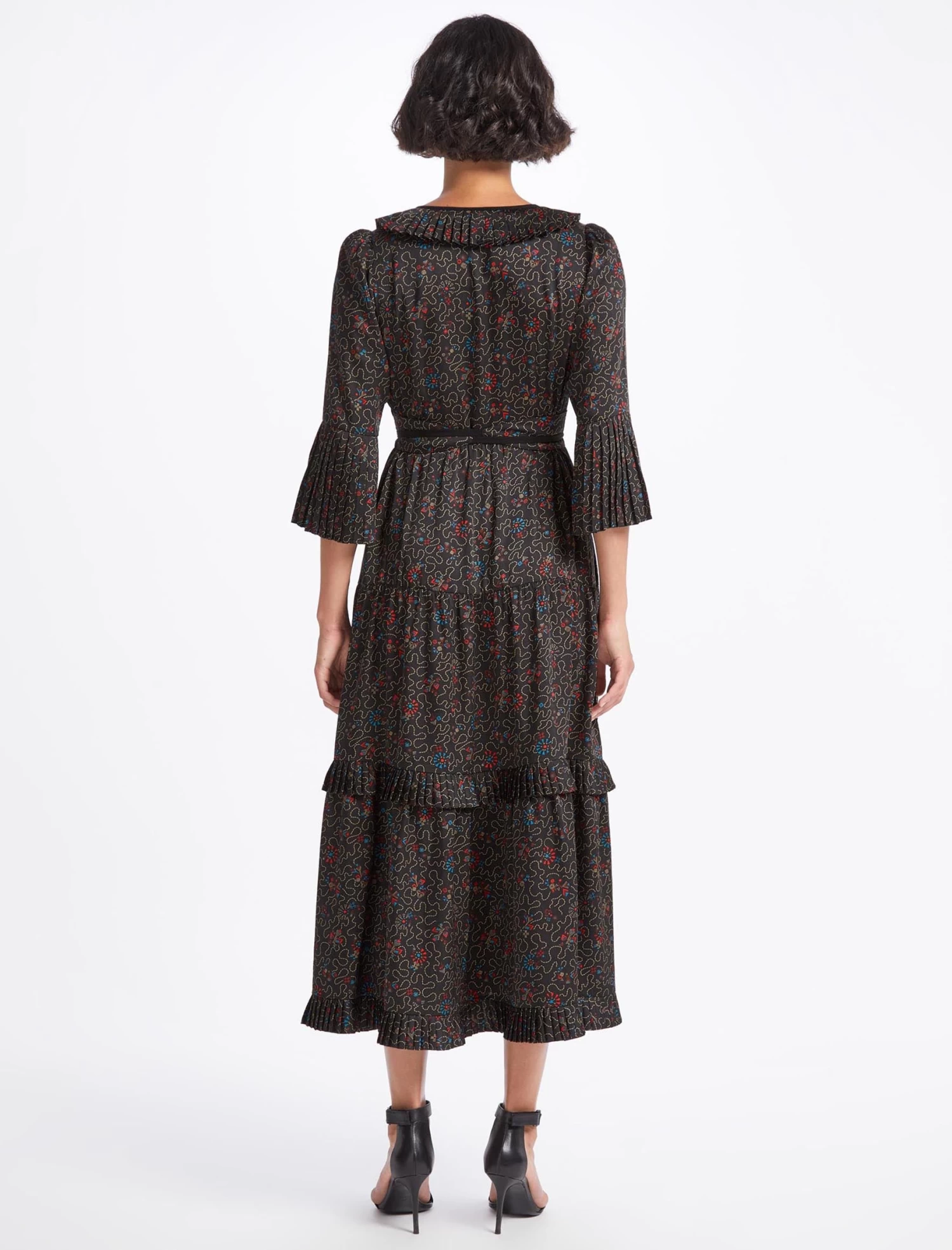 Designed in our silky recycled poly twill the latest iteration of our best-selling Cordelia dress has delicate knife pleats at the neckline, a tiered skirt and elegant sleeve, which enhance its femininity and makes it really special. It’s also permanently pleated so will stay looking elegant from day to night. The waist-cinching rouleau tie and washable material add to its versatility.