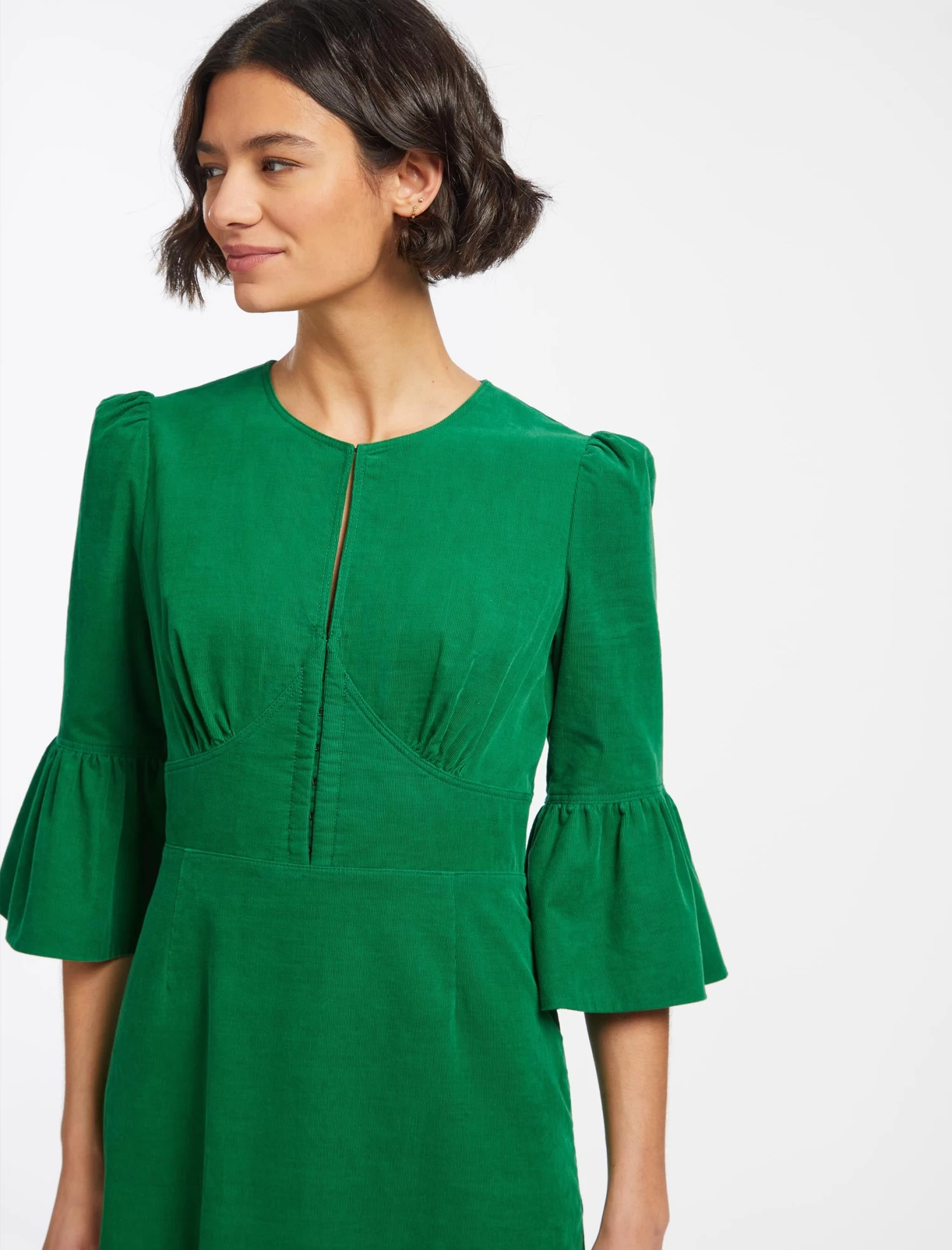 A well-functioning wardrobe is not complete without a gorgeous roster of dresses. A modern spin on Victoriana style, the pin-corduroy Daphne dress has a flattering keyhole neckline that can be worn open or closed, hook-and-eye corsetry and a full peplum skirt. Shaped to an easy fit through the hips with elasticated shirring at the back, this enduring style will keep on giving, season after season.
