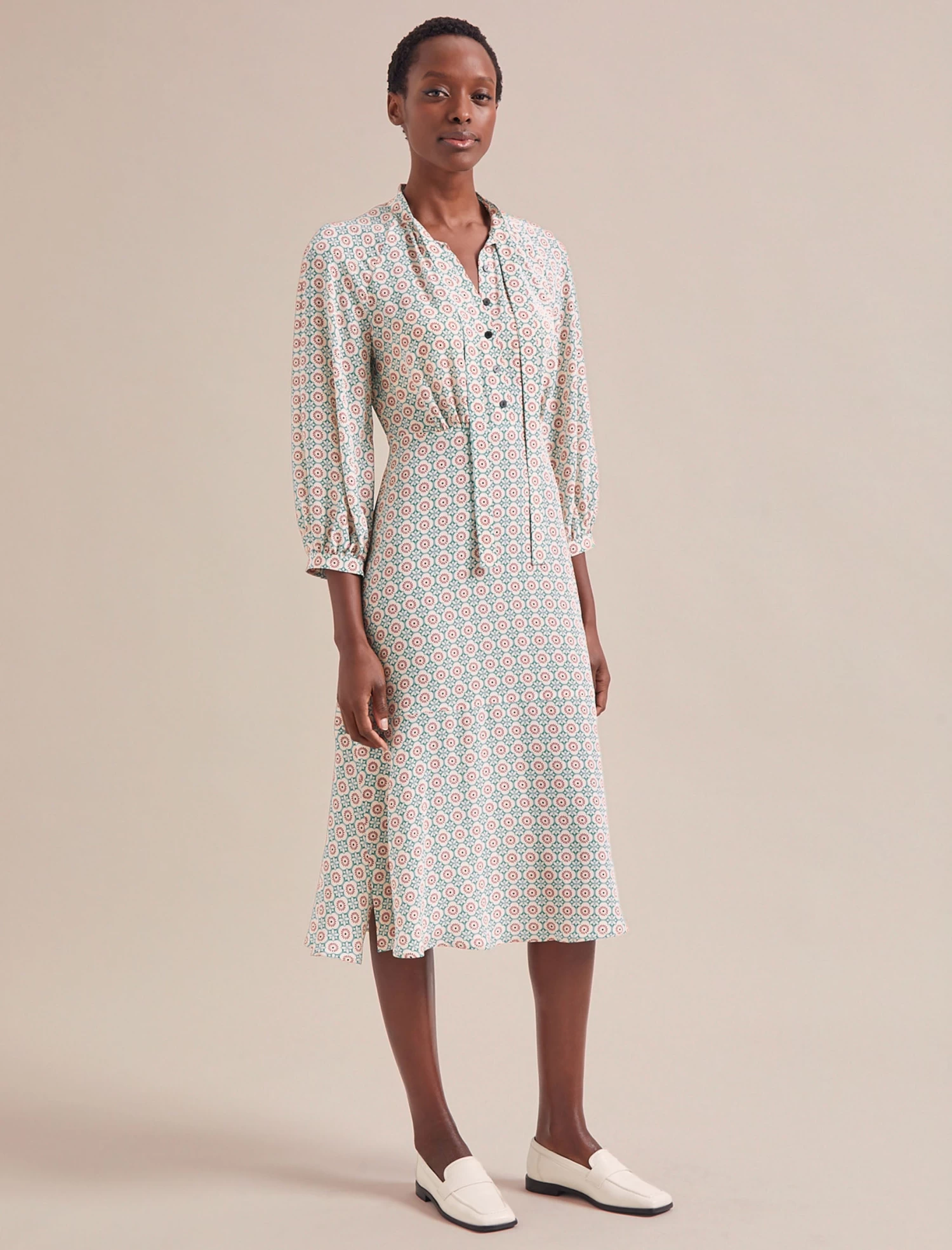 A bestseller season after season the Daria dress works for all figure-types thanks to its bracelet length raglan sleeve, a looser waist that can be nipped in with delicate ties and its easy midi length. Designed in a drapey silk crepe de chine, the pussy bow can be worn tied or nonchalantly undone making it a true multitasker for a polished work look, drinks party or formal event.