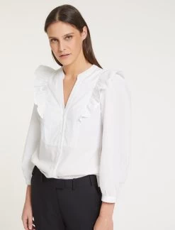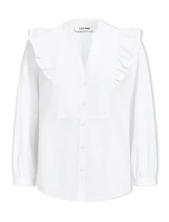 Designed in our new organic cotton, we’ve reworked our ever-popular Dixie shirt in plain white. The V-neck, frills and bib lend simple summer separates like the denim cut-off or a navy chino a feminine charm.