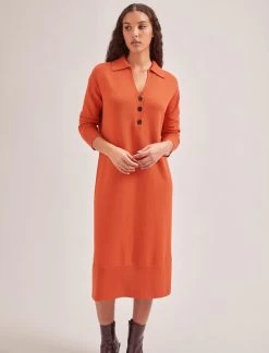 Eva Merino Wool Collared Knit Maxi Dress - Dark Green