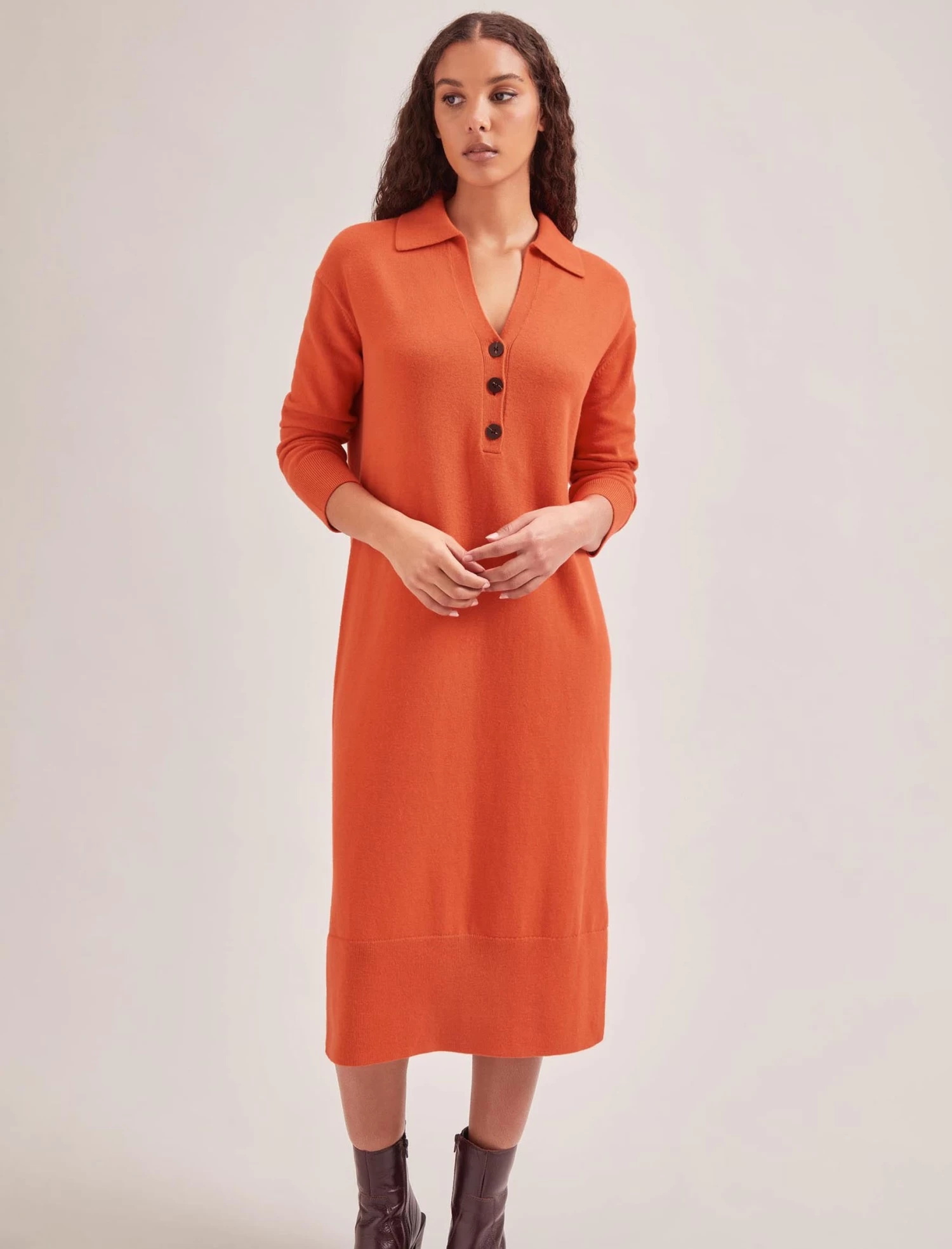 There are some days when looser shapes are the only styles you want to wear. Enter Eleanor. This oversized knitted dress is cut from a wool-and-cotton blend that’s ideal for spring climes. The no-nonsense design features drop shoulders, a cutaway neck and collar and side split, making it ideal for slouchy weekend days or relaxed pub lunches.