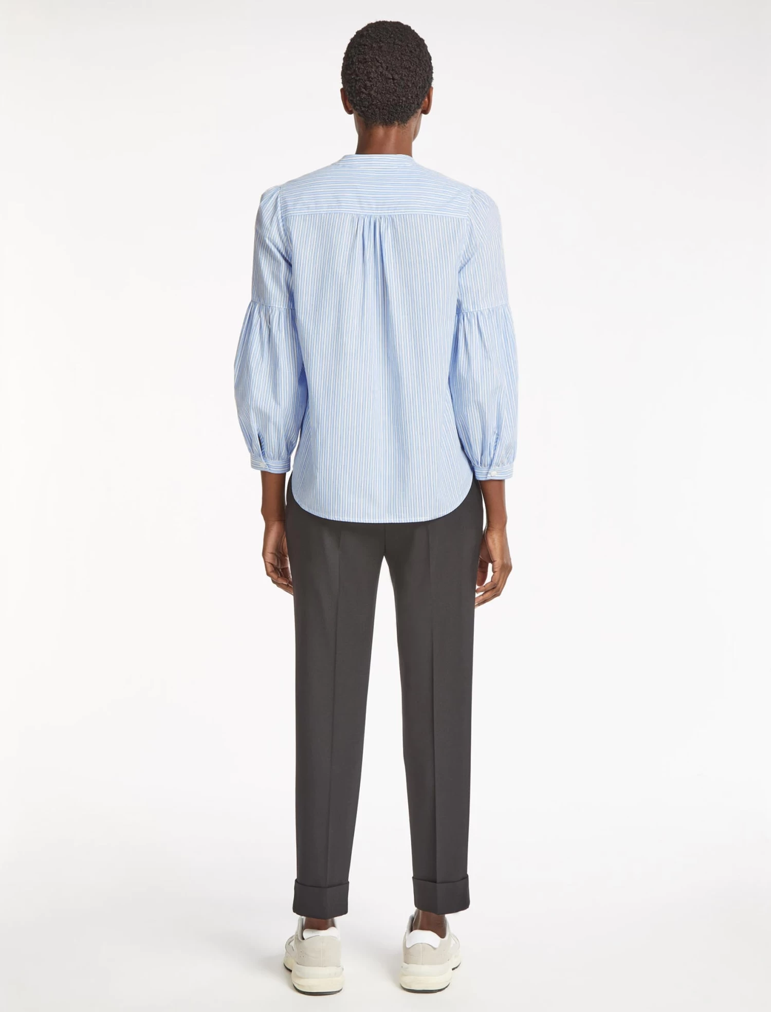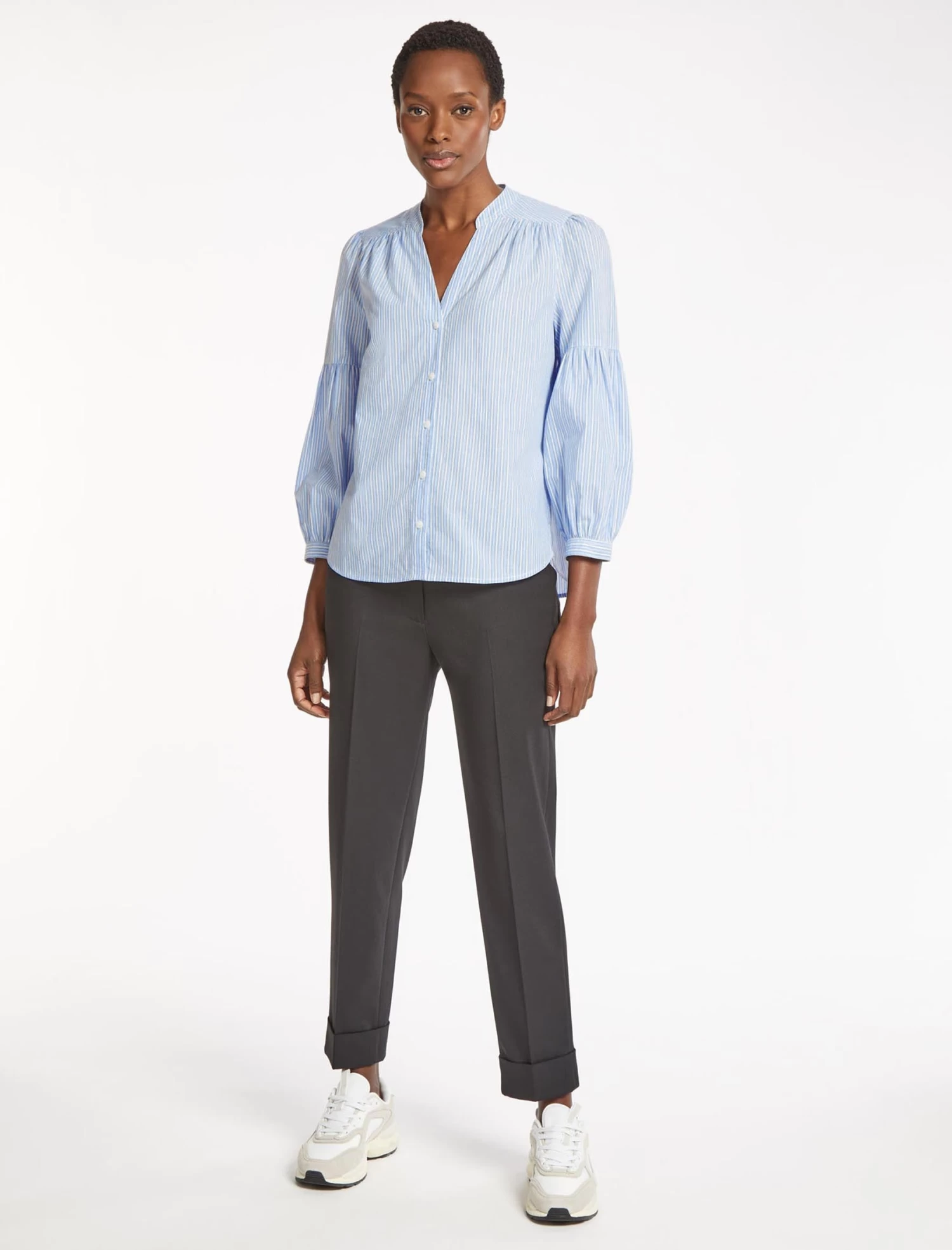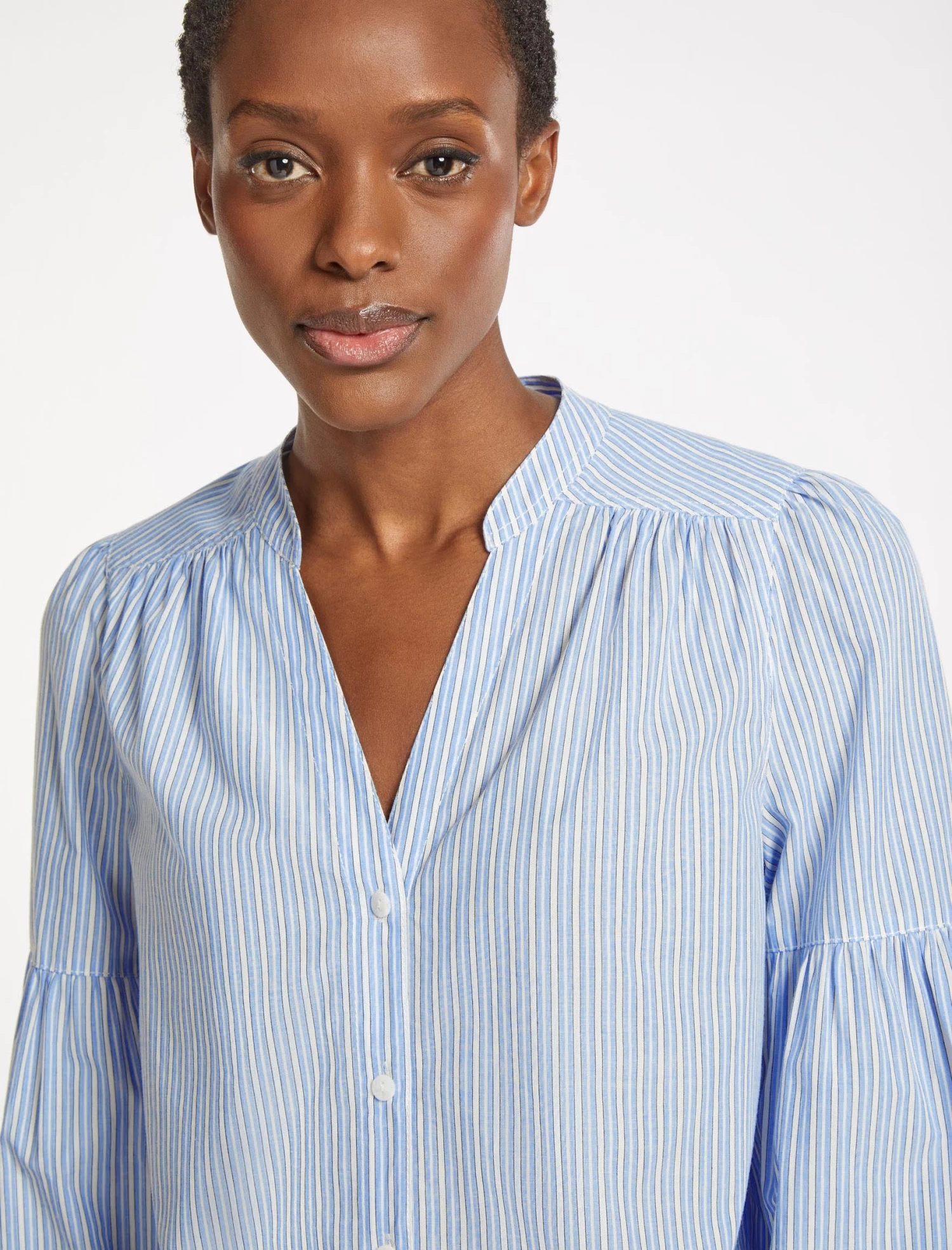 Our best-selling Ella shirt is back in our new organic cotton, which is soft to the touch, easy to iron and lightweight for summer. The signature blouson sleeves, dipped hem and flattering V-neck will instantly elevate wardrobe separates.
