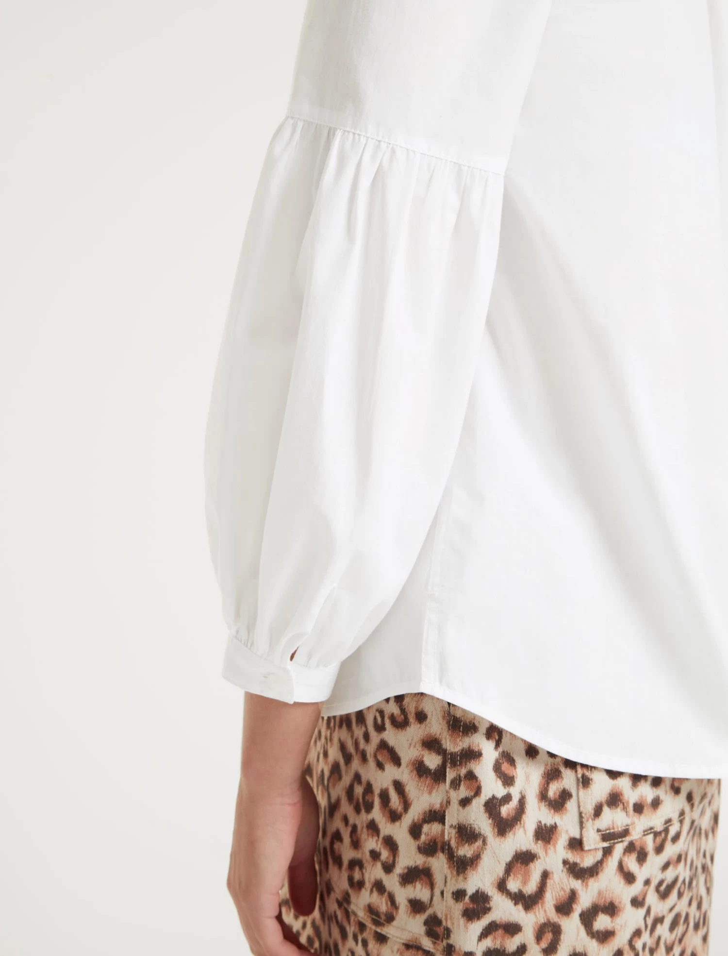 Our best-selling Ella shirt is back in our new organic cotton, which is soft to the touch, easy to iron and lightweight for summer. The signature blouson sleeves, dipped hem and flattering V-neck will instantly elevate wardrobe separates.