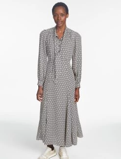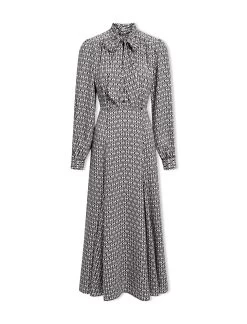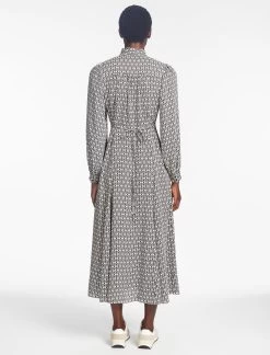 Building a working wardrobe of effortlessly elegant dresses not only helps make the morning routine easier but ensures you always look and feel your best. Take Elspeth. Teaming the practical with the polish, the dress is designed in machine-washable recycled printed crepe and features a large scarf tie and gordet pleats. Minimum effort required.