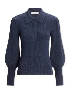 We’ve reworked our hero Eva top for FW23 with a polo-style neckline for effortless versatility. It’s designed in a soft merino-wool rib with added stretch to create a slimming silhouette, while the fitted cuff blouson sleeves add shape and volume. The perfect knit for when you want to feel pulled together, wear it with our leather Tiana skirt or any of our tailored trousers.
