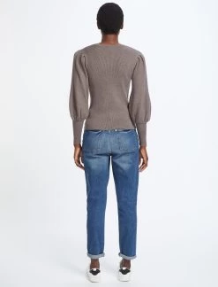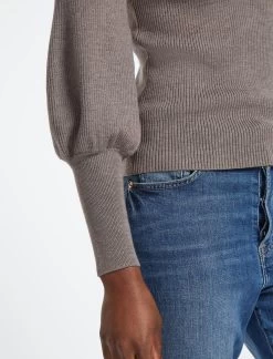 We’ve reworked our hero Eva style with a classic crew neckline for effortless versatility. The merino rib creates a slimming silhouette, while the fitted cuff blouson sleeves add feminine shape and volume. The ultimate pulled together knit, the Eva is the perfect alternative to a jacket and shirt. Wear with our leather Tiana skirt or any of our tailored trousers.