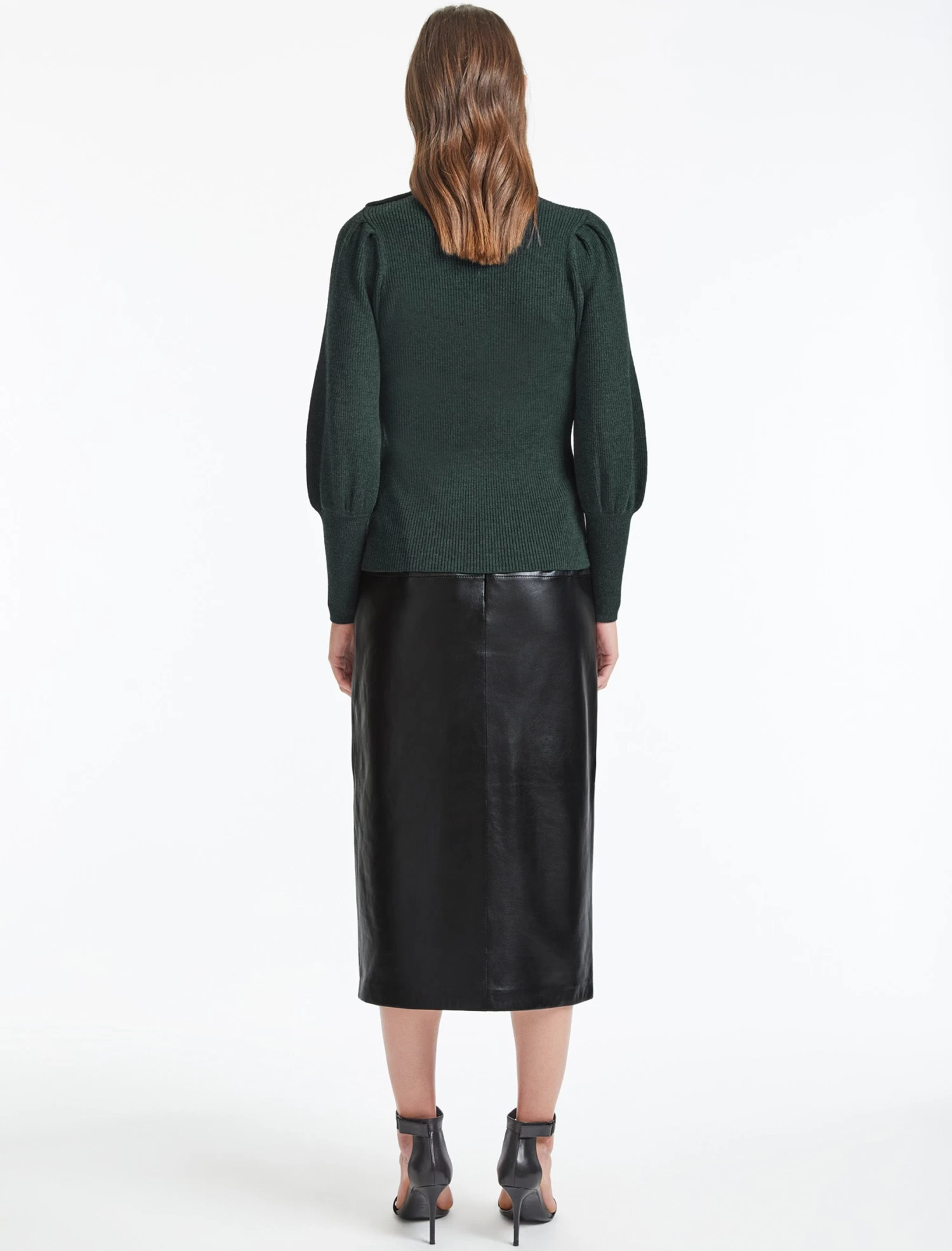 We’ve revisited our bestselling Eva jumper with a smart new summary shoulder placket and a chic funnel neck. Designed in our merino-wool blend rib to create a slimming silhouette,  the fitted cuff blouson sleeves add feminine shape and volume. An elevated take on a simple sweater, wear with our leather Zola skirt or our Tennyson trouser and a heeled boot.