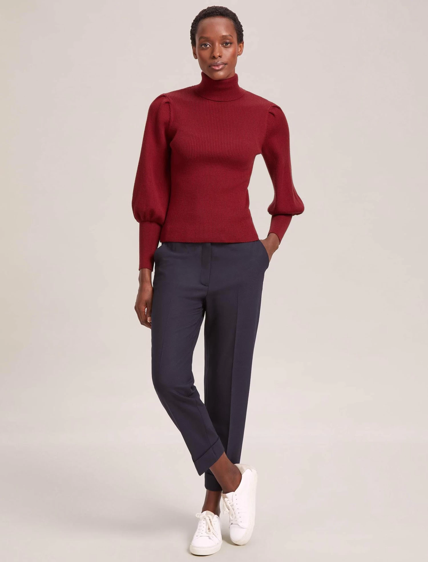 With its rollneck and shapely blouson sleeves our new Eva knit hints at the 1970s bourgeois dressing trend and pairs perfectly with a pencil skirt or a pair of sharp tailored trousers. We’ve spent hours on the cut ensuring the fit is perfect and with its full rib, it’s as comfortable as it is stylish. Made from merino wool, it’s also surprisingly practical, being machine-washable and pill-proof.