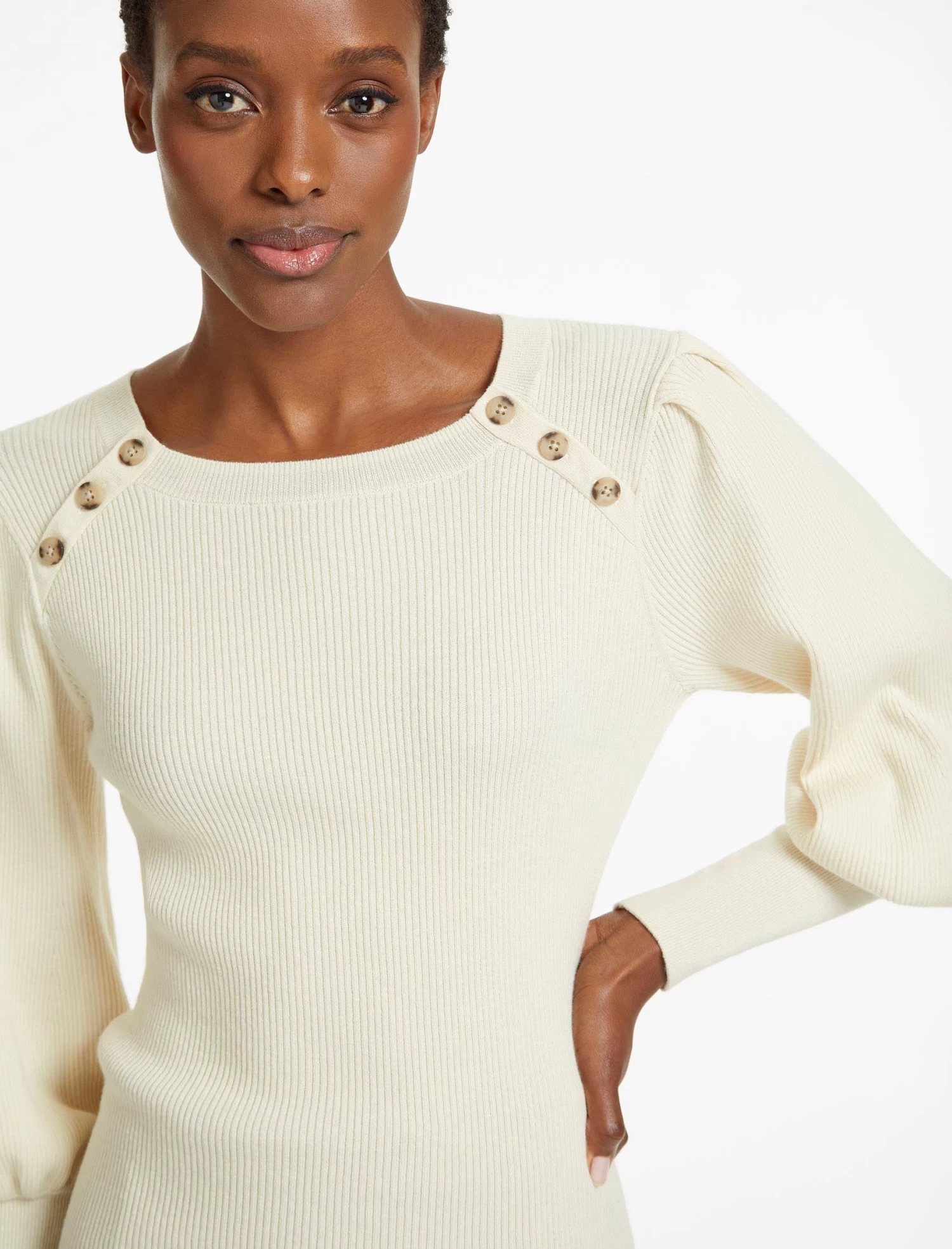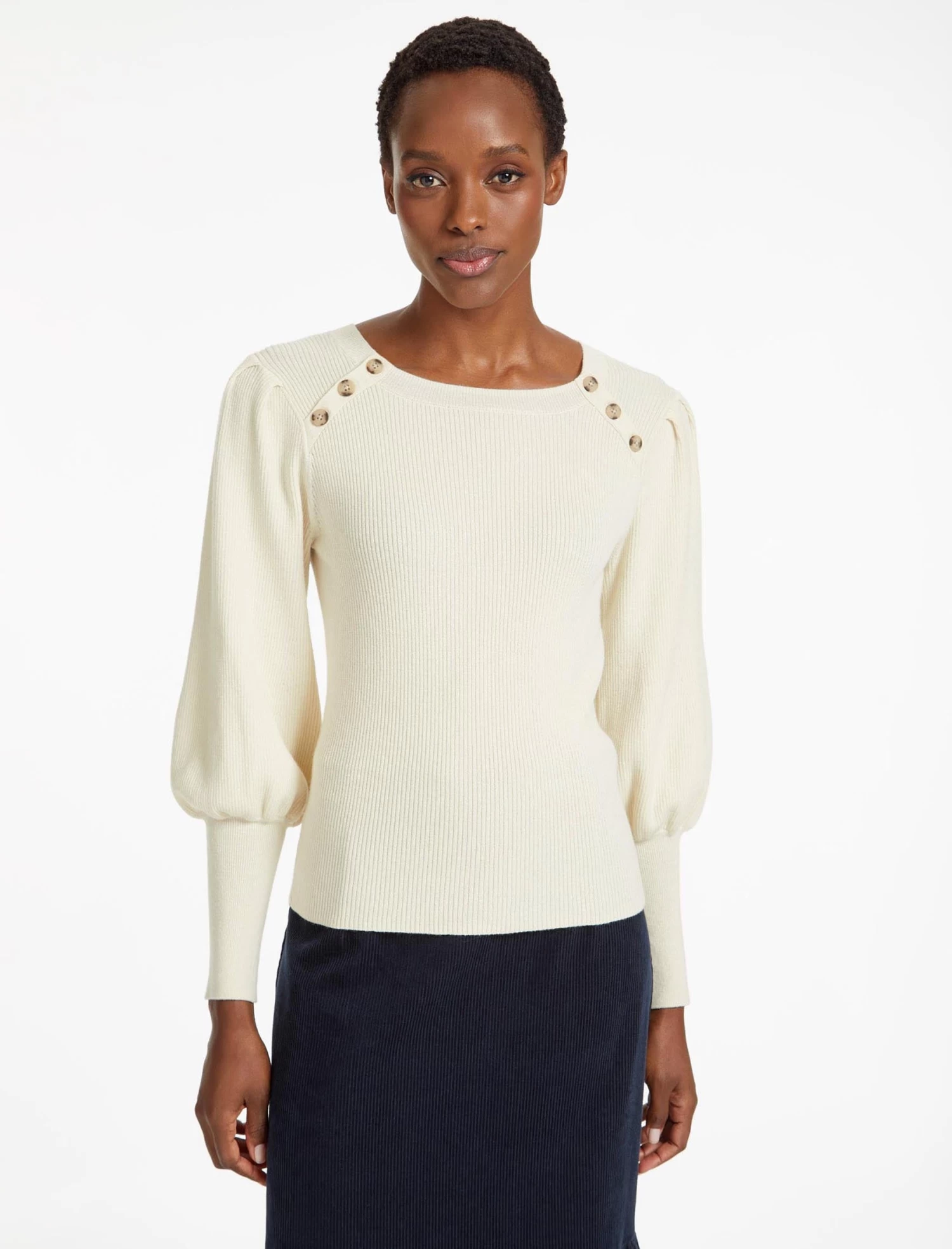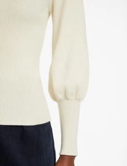 Our latest iteration of Eva is cut from a lighter weight cotton-and-wool blend that gives it seasonal longevity. A step-up from your staple crew neck, it features a blouson sleeve, long ribbed cuff and Breton-style fixed summarys. Pair with your favourite denim or cropped trouser and a box-fresh trainer.