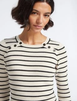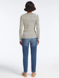 Spring may not instantly say knitwear, but a few mid-to-lightweight jumpers are key to a trans-seasonal wardrobe. Enter, then, Freida. A rework of a classic Breton style, it is cut from a cotton-and-merino-wool blend that feels fresh and light on the skin. The fixed summary detailing adds extra interest to the crew neck style. Wear under suiting or jackets for a contemporary spin.