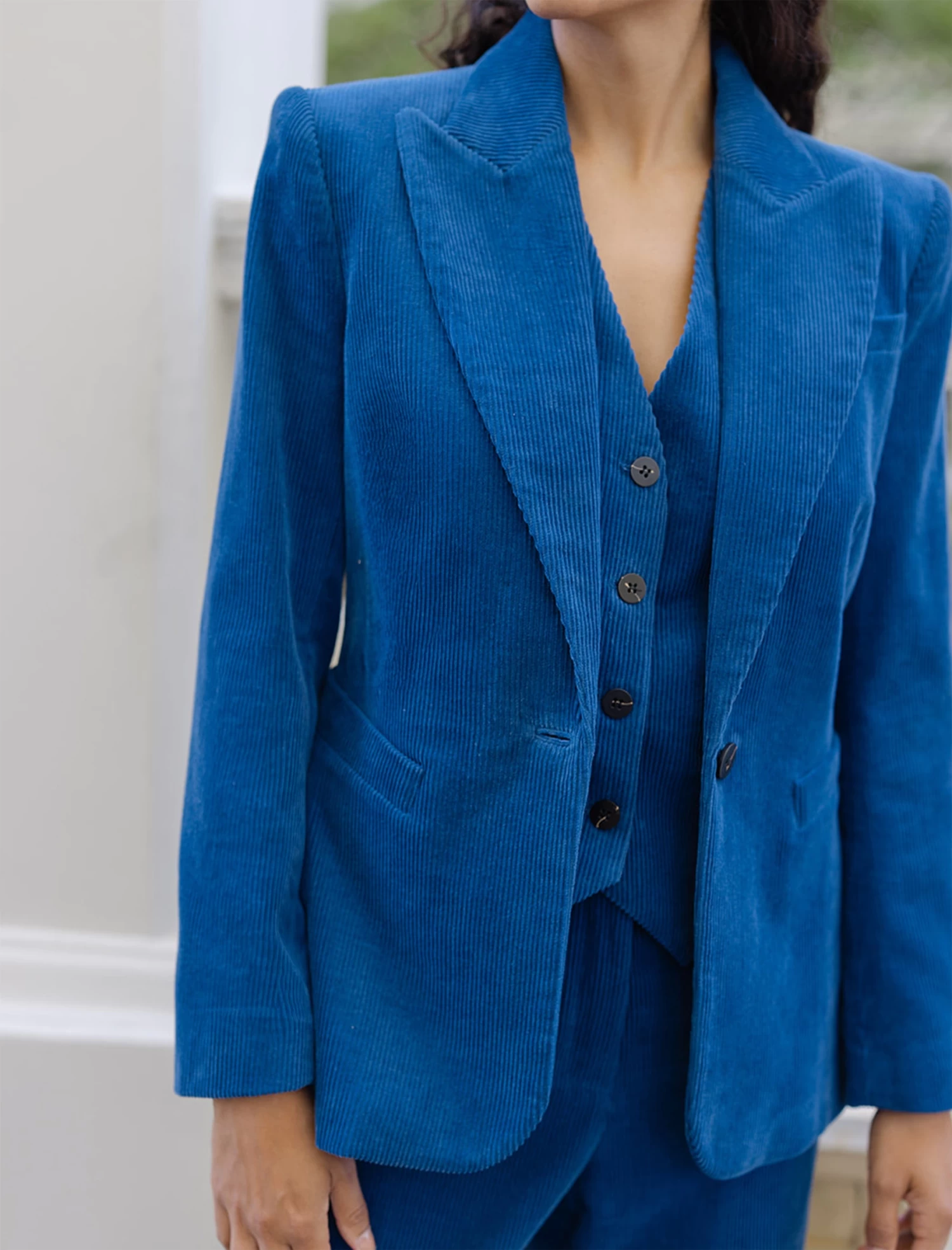 A well-cut blazer has been holding strong on the catwalks for a few seasons now. Enter, then, our standout Gene corduroy blazer. Nodding to classic 70s styles, the organic cotton jacket has big shoulders, a large lapel and shaping through the waist. Wear with the matching corduroy Harlow trouser or separately with a dress. This is power dressing 2.0.