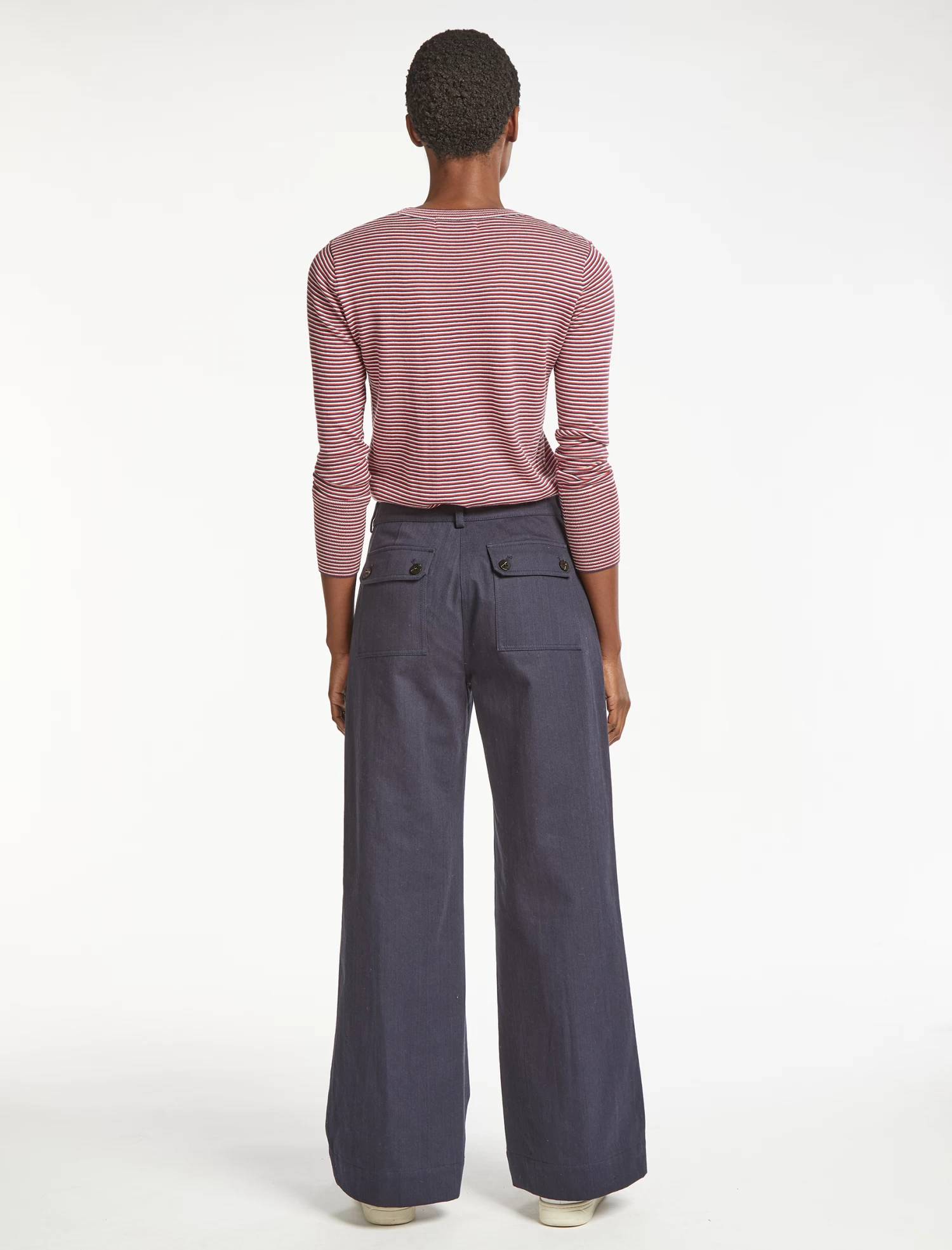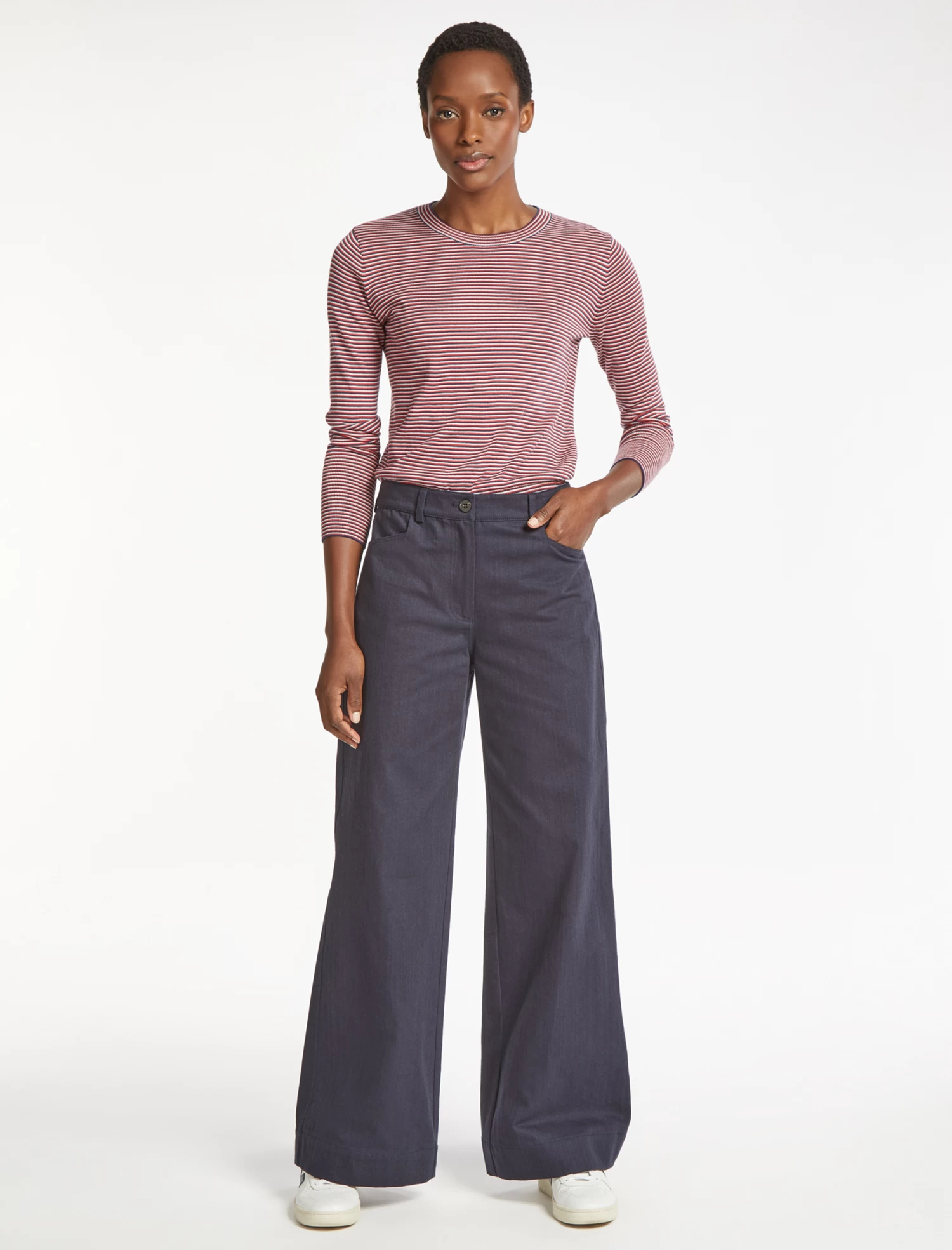 Meet Hayden – our take on the so-now wide-leg trouser that instantly brings a sense of polished ease to your workday and weekend wardrobe. Cut from a heavy cotton twill to give it structure and shape, look out for the angled pocket detailing on the front and back flap pockets. Wear with our fine-knit Josie top, Pippi blouse and cashmere designs.