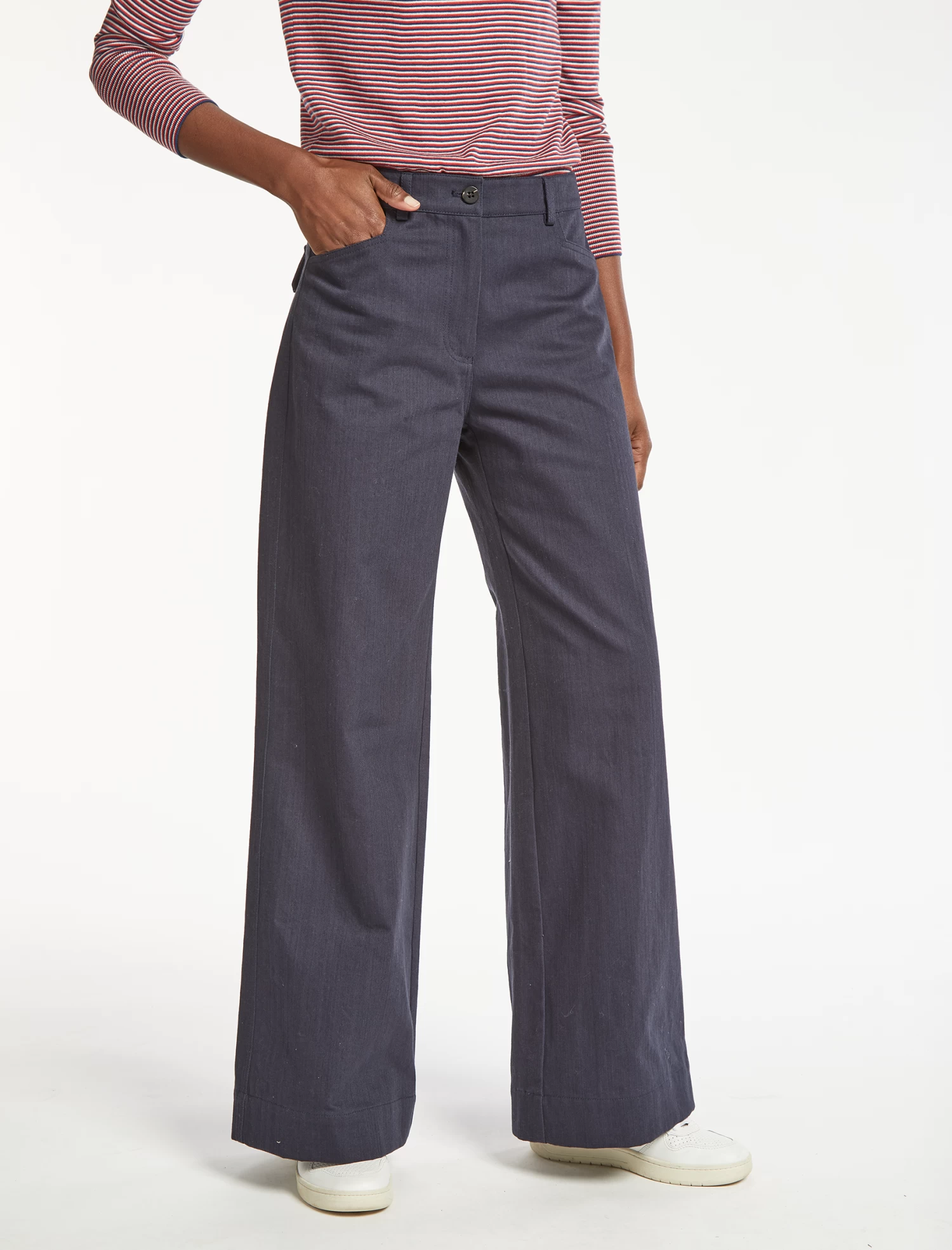- High waisted, wide leg trouser made from our denim like heavy cotton twill