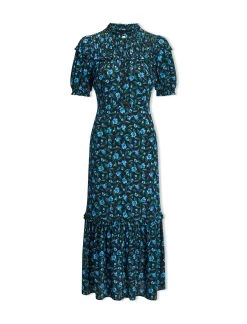 Weddings, parties, client meetings – Hermione has every occasion covered. It’s designed in a lightweight viscose crepe with our decorative deco floral print that looks good day or night. As for the style? We’ve blended some of the best bits from our other bestselling dresses – like the Voletta collar, our signature shirred puff sleeves and back, and our Daphne-style tiered skirt – to create a versatile dress that feels polished and put together, wherever you decide to take it.