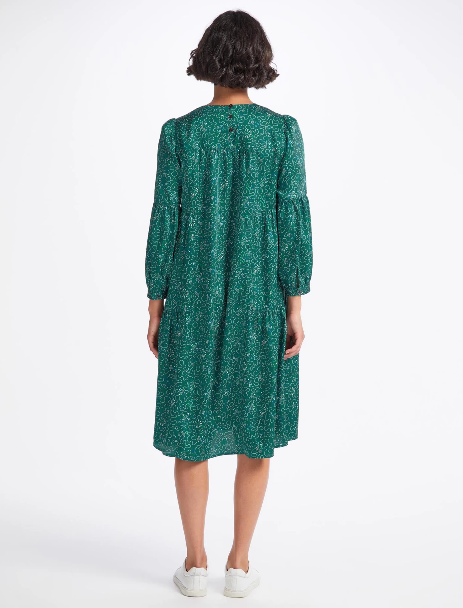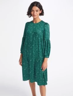 This trapeze dress has relaxed ease written all over it. A simple throw-on-and-go style, Hester is designed in our silky recycled poly twill and patterned with our wiggle print. The looser silhouette and gently gathered pleating add to its carefree, all-seasons vibe. Team with a longline cardigan and trainer for a casual look, switching to bare legs and a heel for more glamour.