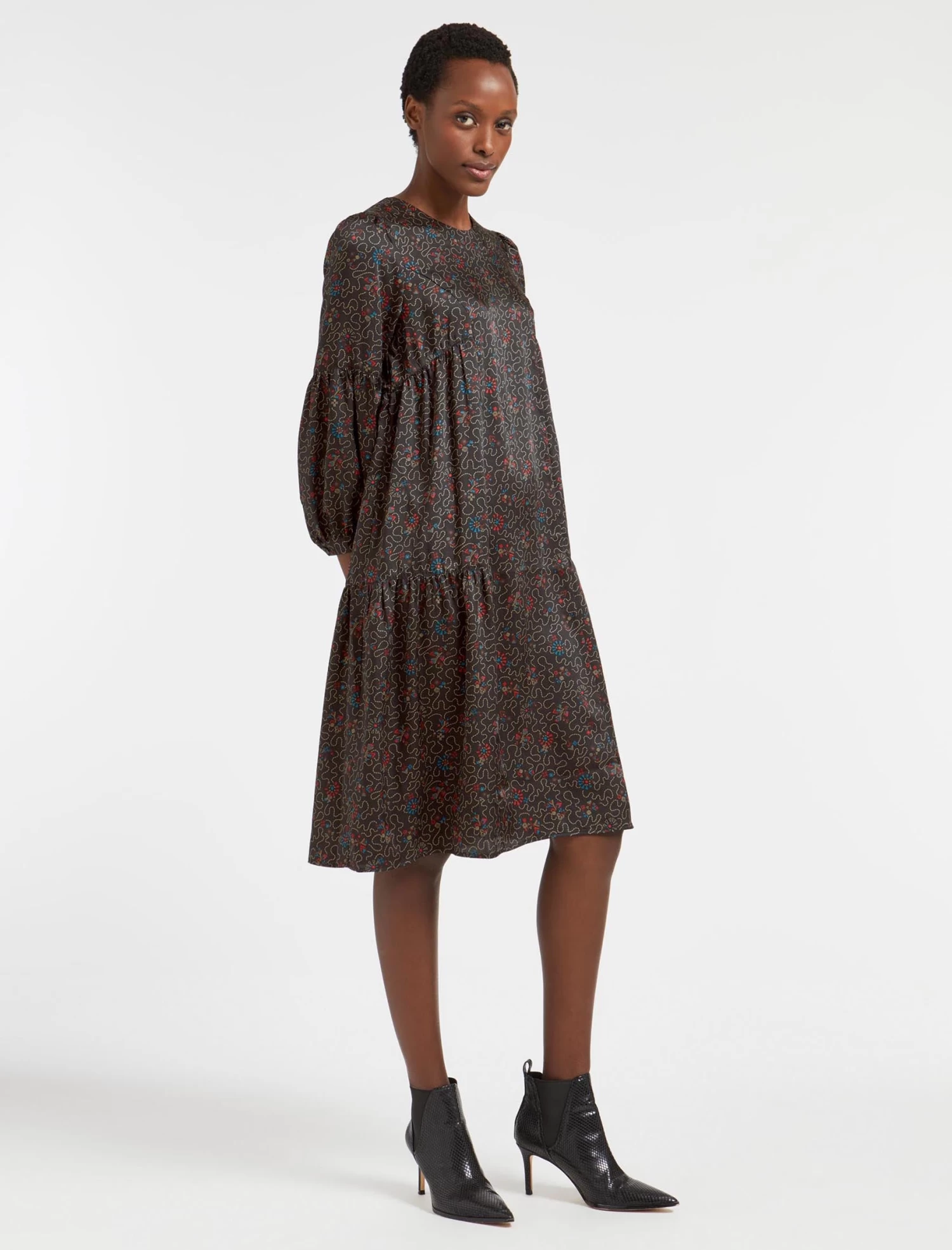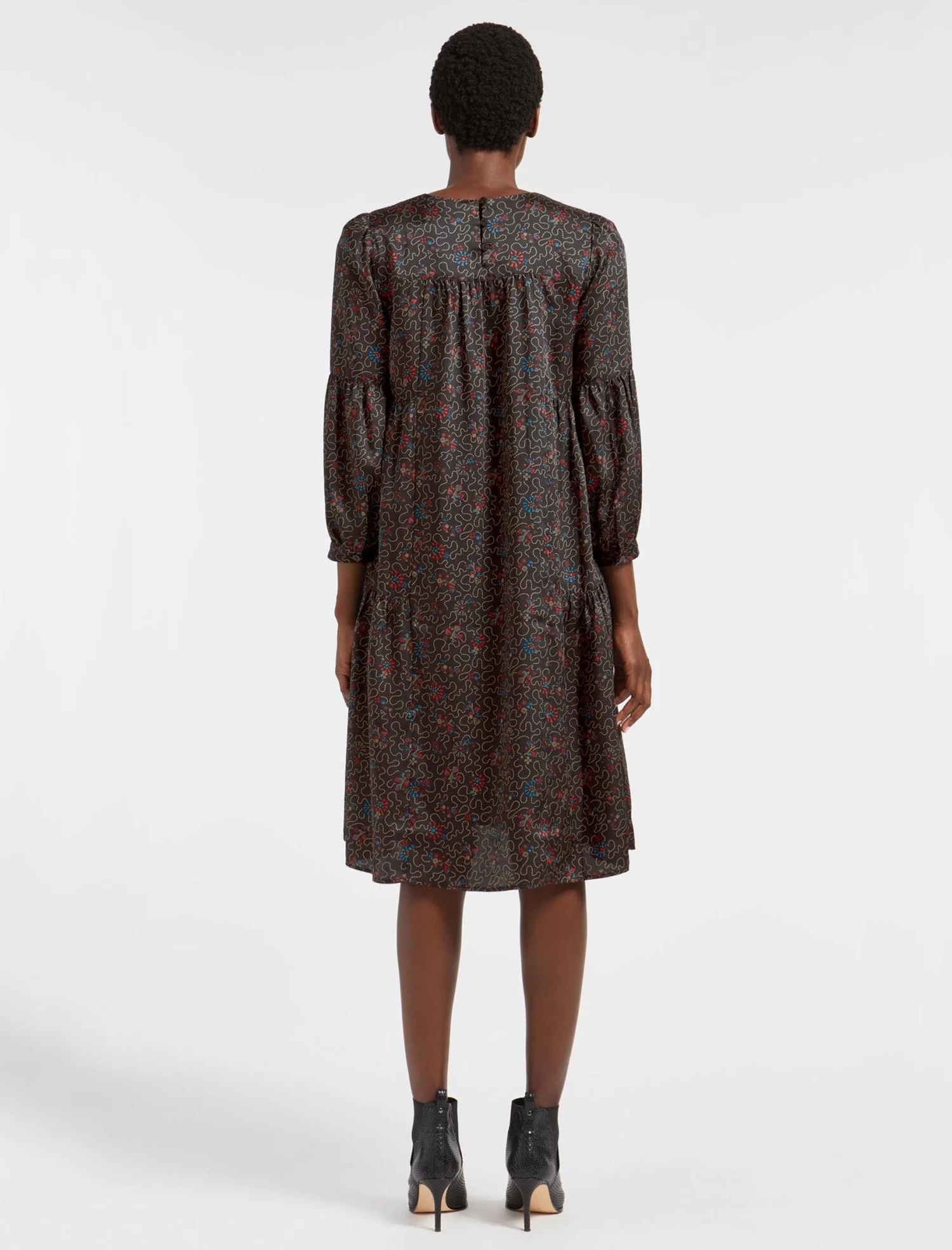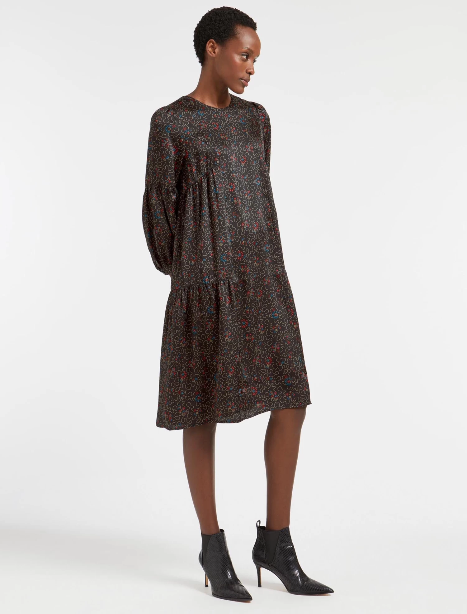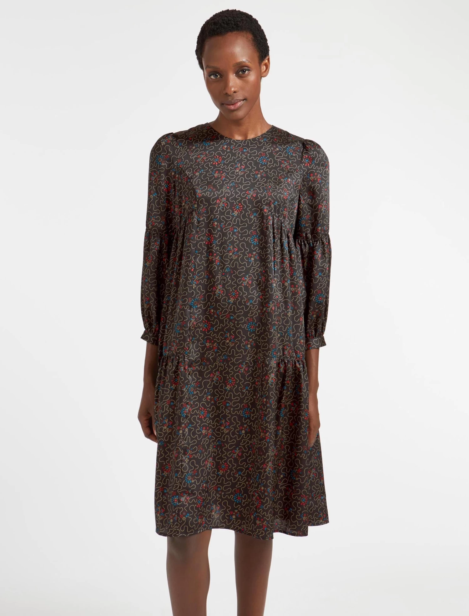 This trapeze dress has relaxed ease written all over it. A simple throw-on-and-go style, Hester is designed in our silky recycled poly twill and patterned with our wiggle print. The looser silhouette and gently gathered pleating add to its carefree, all-seasons vibe. Team with a longline cardigan and trainer for a casual look, switching to bare legs and a heel for more glamour.