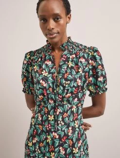 With its figure-flattering bias-cut silhouette, it’s little surprise our Irina dress has been a sell-out hit season after season. Back for Spring/Summer 24 in a fun, flamboyant floral with a subtle leopard jacquard, its winning formula of pretty shirring, bias-cut skirt and tie-neck remain. What’s new is the robust washable fabric that won’t crease making it ideal for travel and perfect for a far-flung party.