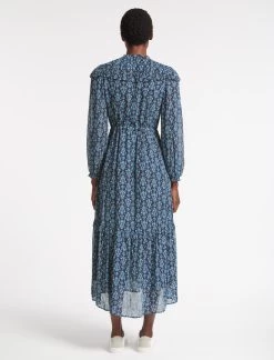 Get your spring feels courtesy of Isla. Designed in a delicate georgette blend, this unashamedly feminine design includes a pretty ruched yolke, drawstring waist and frilled detailing. While the folk floral print nods to warmer climes, the long, shirred sleeves and dipped hem mean it works just as well on chilly days.