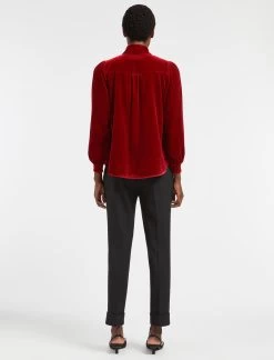 Designed in rich jewel tones that will look chic year after year, our Jacquetta blouse features feminine touches including the pretty long shirred sleeve and rouleaux summarys. The necktie can be worn loose and turned down or tied as a choker, depending on your mood. Get the party started with a leather skirt or tailored trouser and a killer heel.