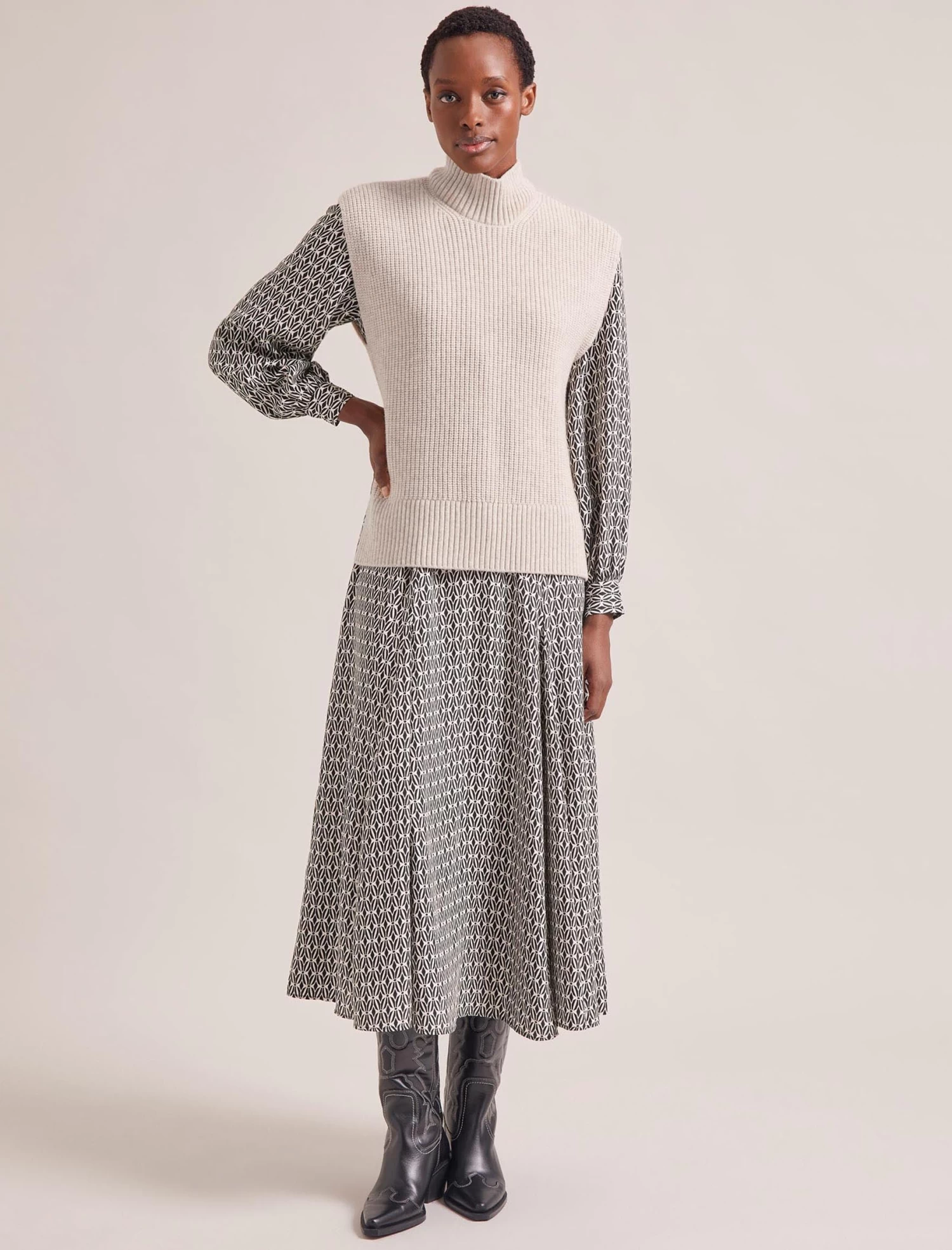 Our much-imitated Janice has reached iconic status in the Cefinn collection. Why? Knitted in a luxe cashmere blend that doesn’t pill, we have invested hours perfecting every element of the fit, from the shape of the funnel neck to the flattering dropped hem. A true transeasonal layering hero it can be worn with a multitude of outfits, keeping a pretty sleeve on show.