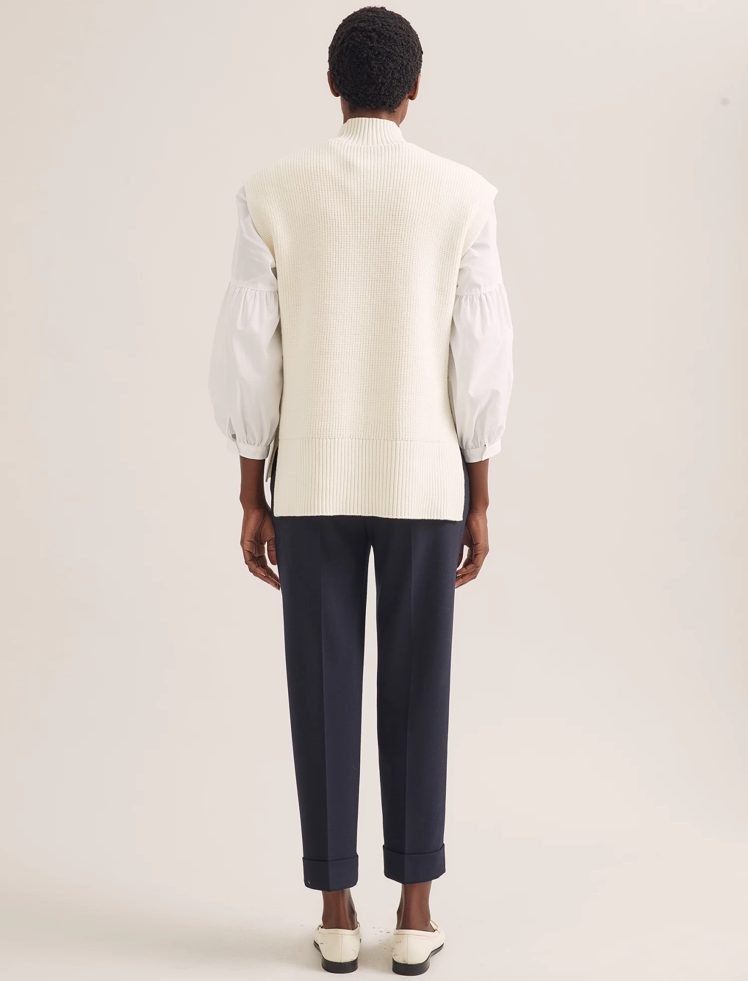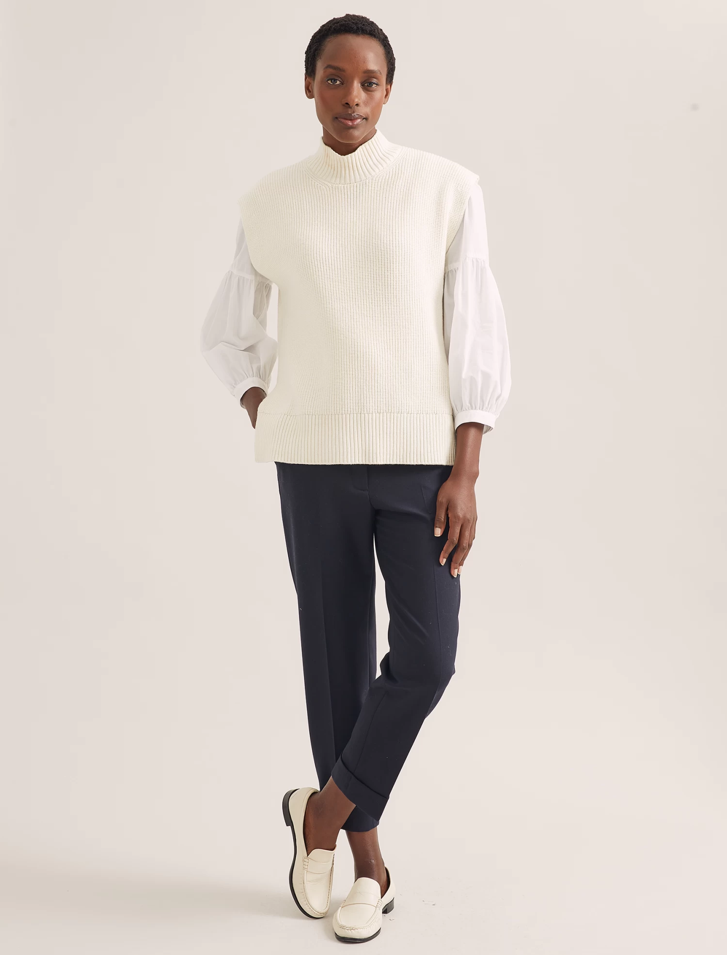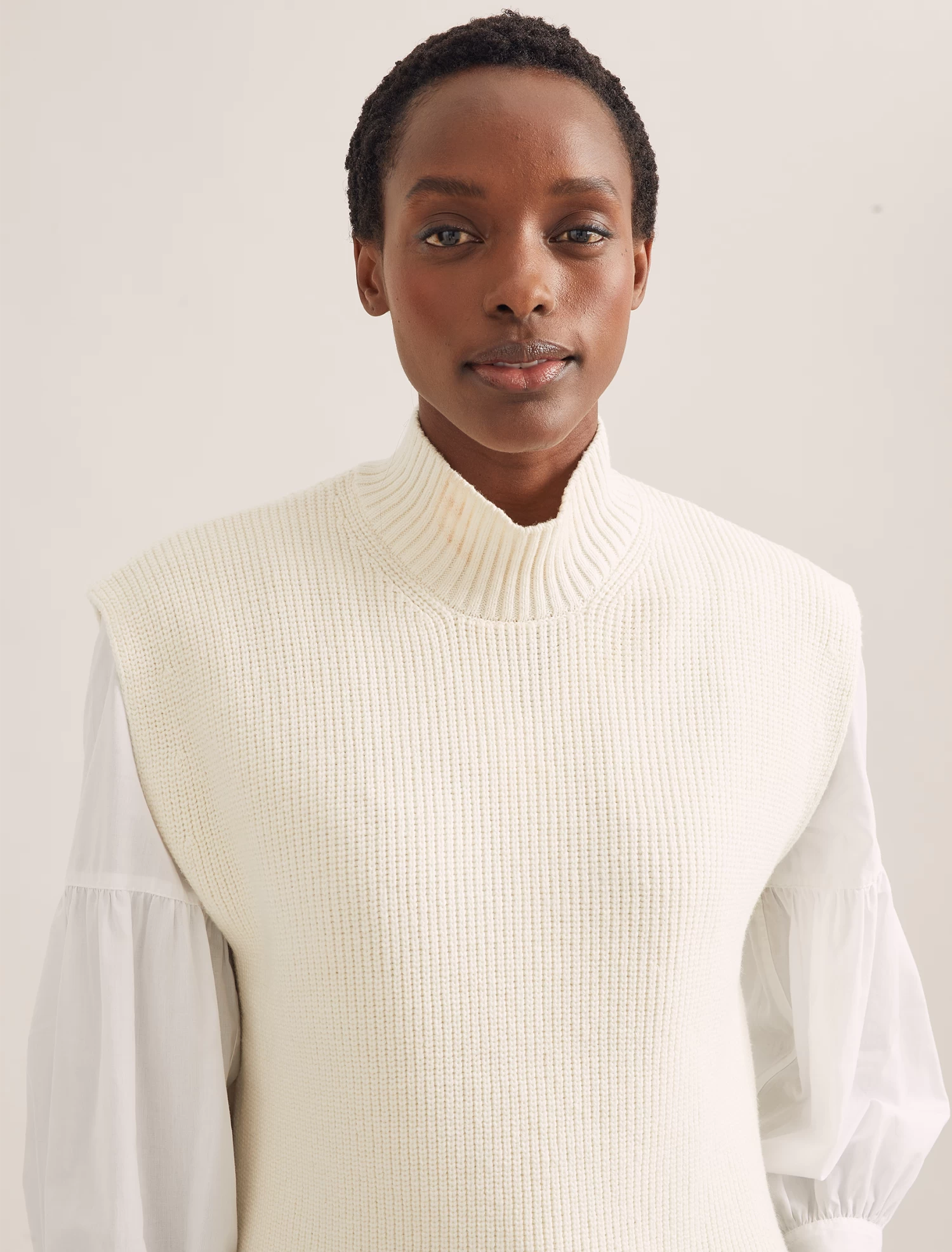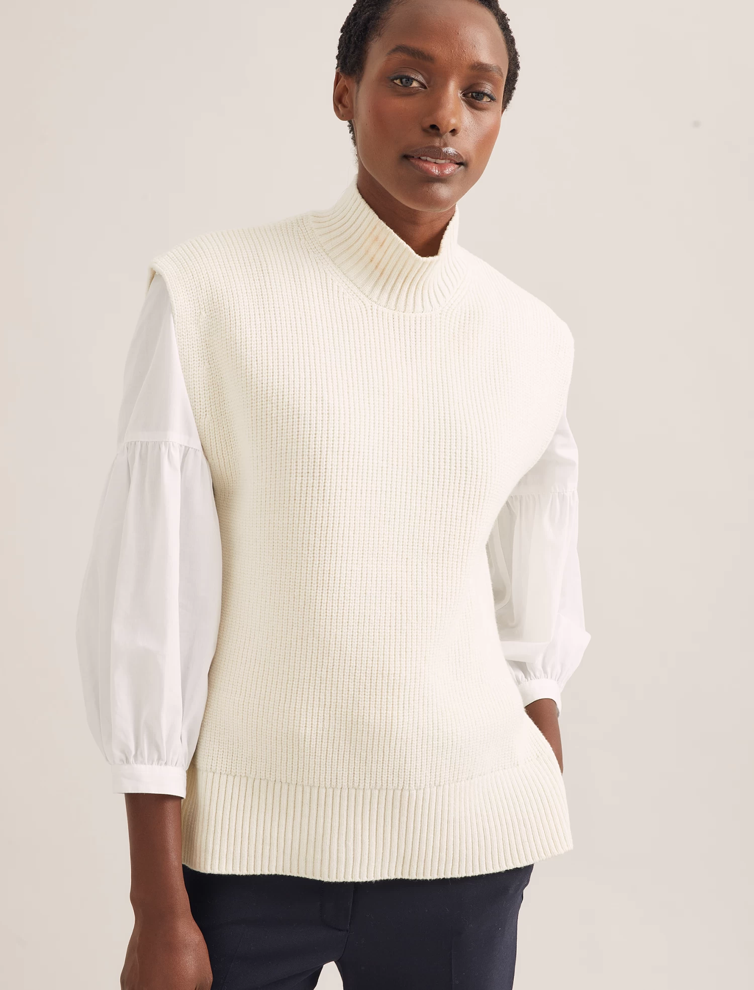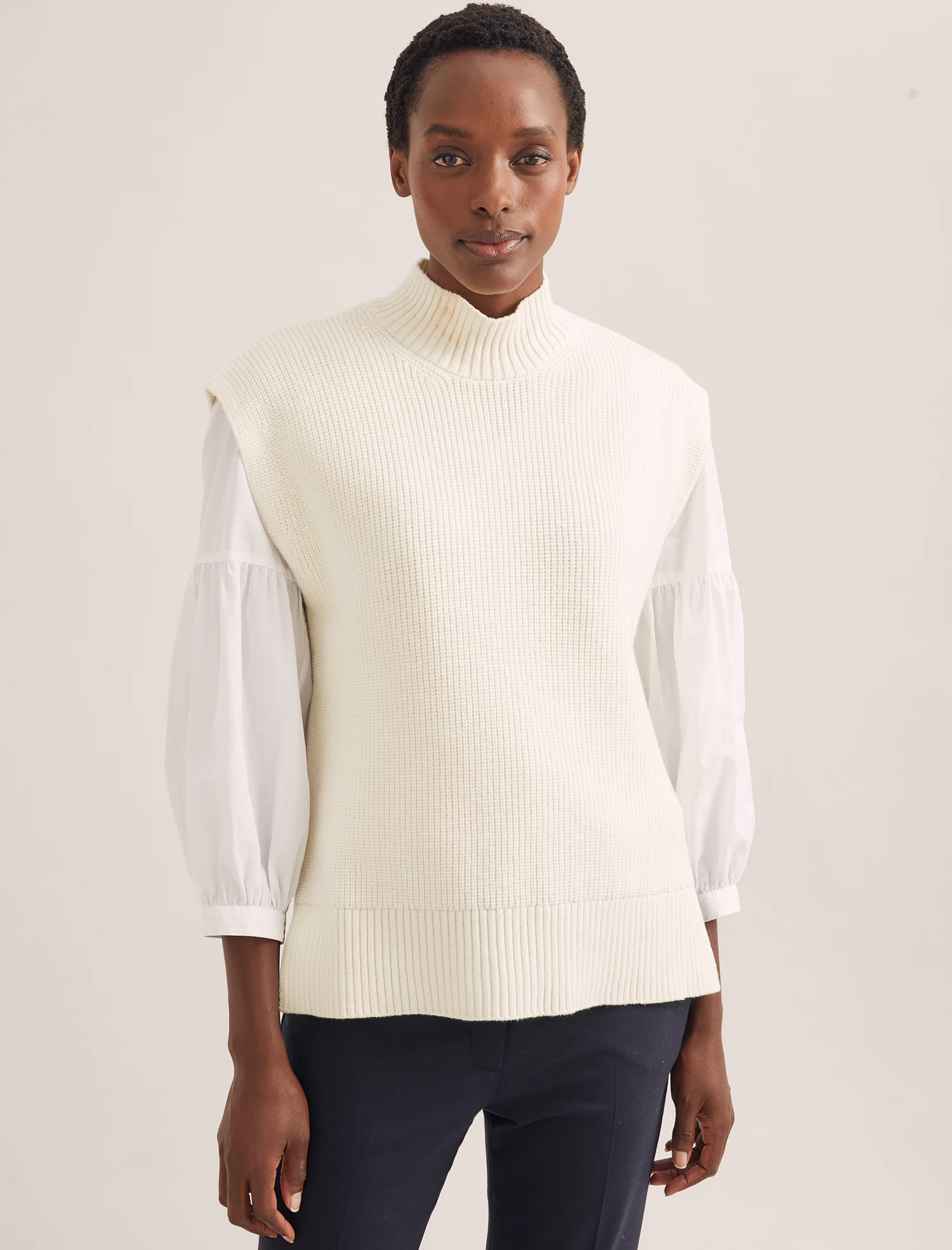 Our hero Janice sleeveless jumper is the ultimate on-trend solution for keeping warm. Knitted in a machine-washable merino wool blend, it layers perfectly over a dress, jumpsuit, blouse or shirt without hiding a pretty sleeve, making it an endlessly wearable transeasonal piece.