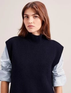 Our hero Janice sleeveless jumper is the ultimate on-trend solution for keeping warm. Knitted in a machine-washable merino wool blend, it layers perfectly over a dress, jumpsuit, blouse or shirt without hiding a pretty sleeve, making it an endlessly wearable transeasonal piece.