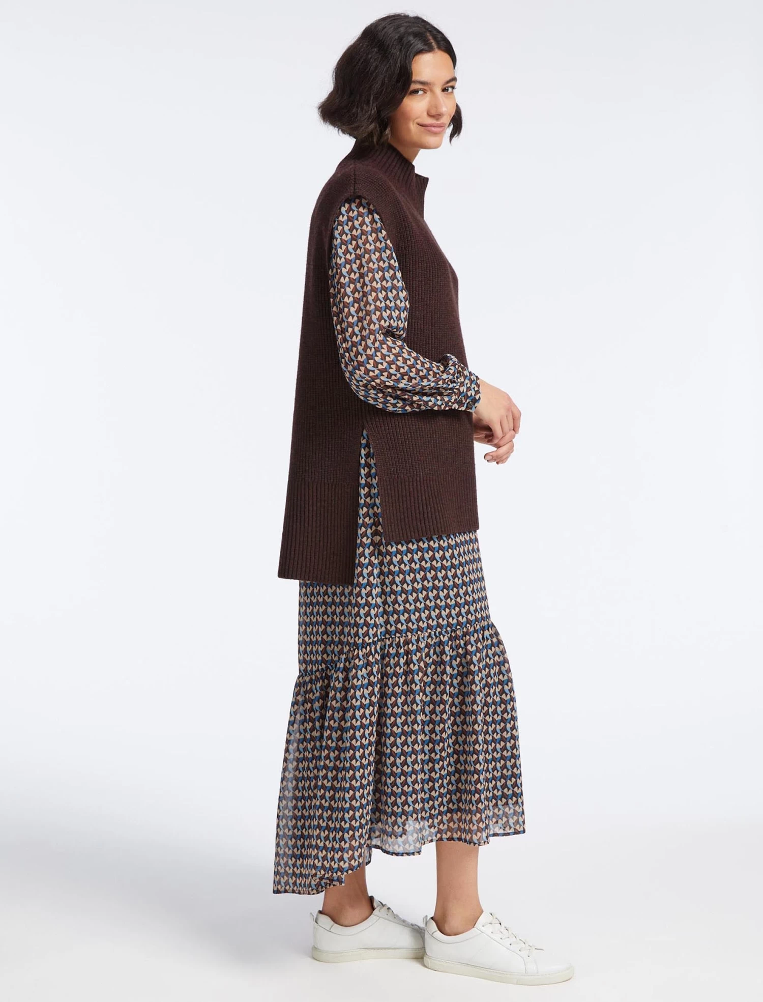 Our hero Janice sleeveless jumper is the ultimate on-trend solution for keeping warm. Knitted in a machine-washable merino wool blend, it layers perfectly over a dress, jumpsuit, blouse or shirt without hiding a pretty sleeve, making it an endlessly wearable transeasonal piece.
