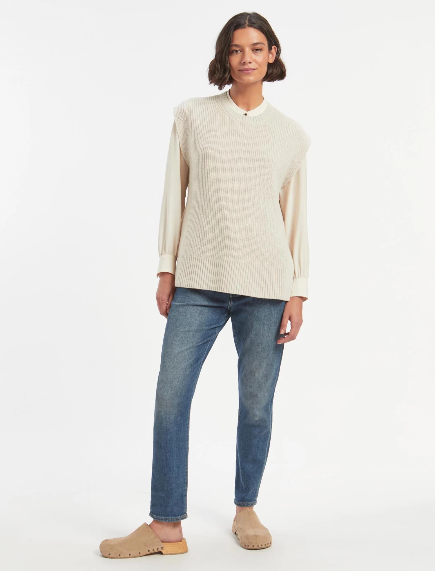We’ve reworked our bestselling Janice design in a round neck, making it the ideal layering top when you’re on-the-go. Knitted in a wool blend, the drop shoulders, side slits and drop hem mean it will easily slip over a multitude of outfits – whether a tailored shirt or blouson blouse – and under a blazer on chillier days.