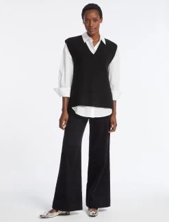 Our V Neck Janice is the ideal layering top when you’re on-the-go. Knitted in a merino wool blend, the drop shoulders, side slits and drop hem mean it will easily layer over a multitude of outfits – from a voluminous dress to an untucked white shirt and wide-leg trouser to a split-hem legging and long-sleeved tee. Talk about the ultimate multi-tasker.