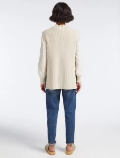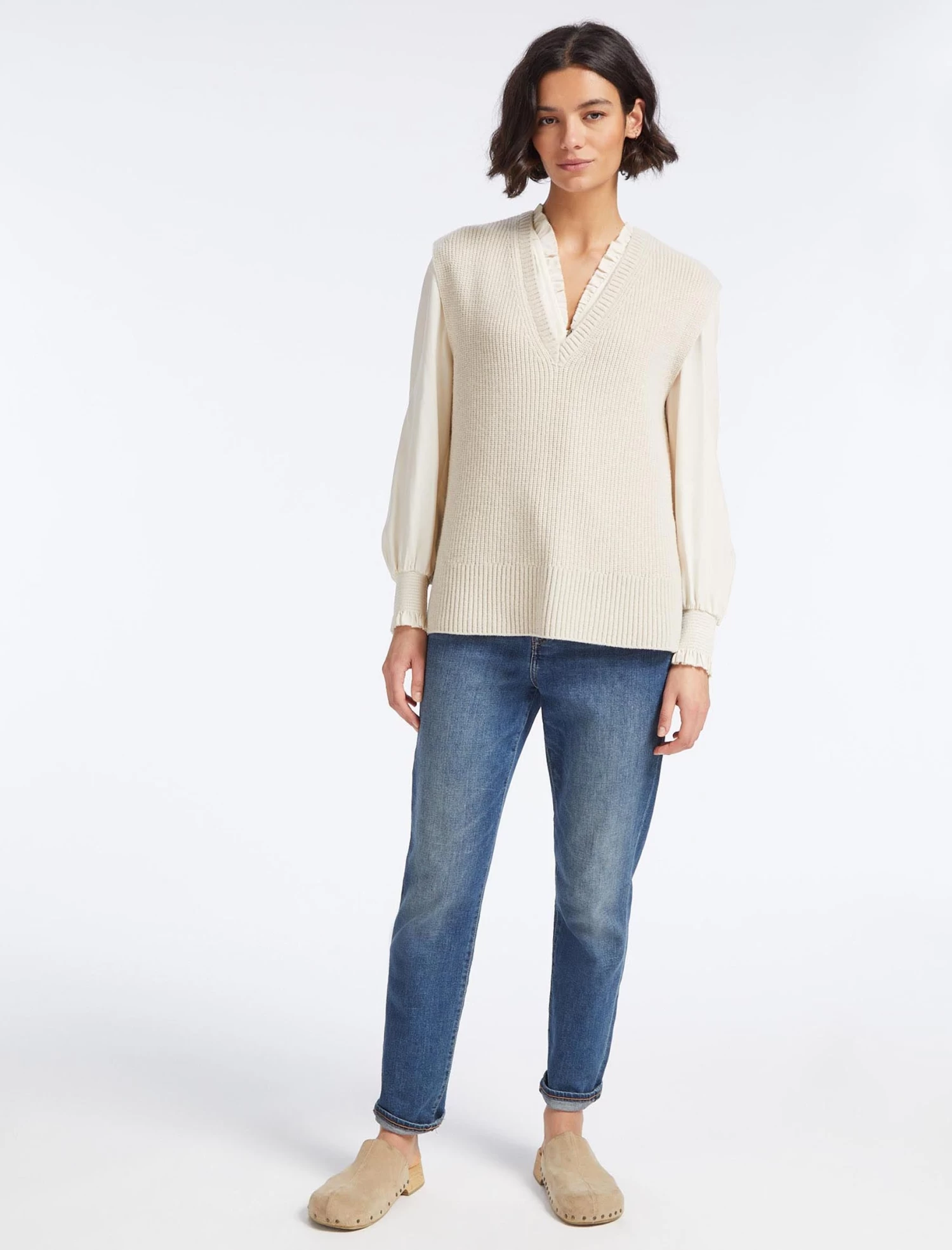 Our V Neck Janice is the ideal layering top when you’re on-the-go. Knitted in a merino wool blend, the drop shoulders, side slits and drop hem mean it will easily layer over a multitude of outfits – from a voluminous dress to an untucked white shirt and wide-leg trouser to a split-hem legging and long-sleeved tee. Talk about the ultimate multi-tasker.