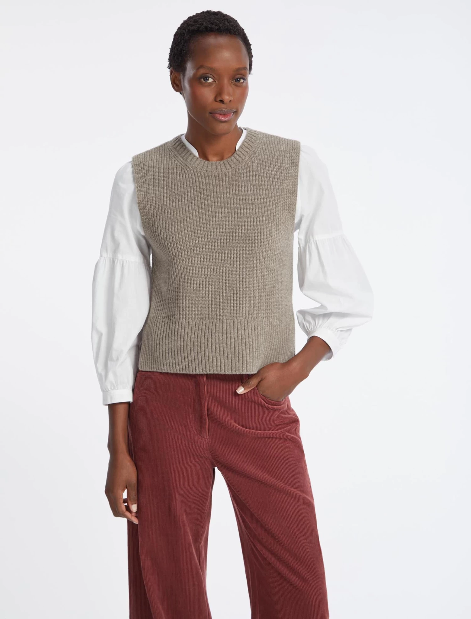 Our bestselling Janie sleeveless knit neatly combines wearable ease, versatility and style. A brilliant layering piece, the fully fashioned armholes ensure it sits snugly over any sleeve – whether a tailored shirt, silk blouse or dress – and under a blazer on chillier days.