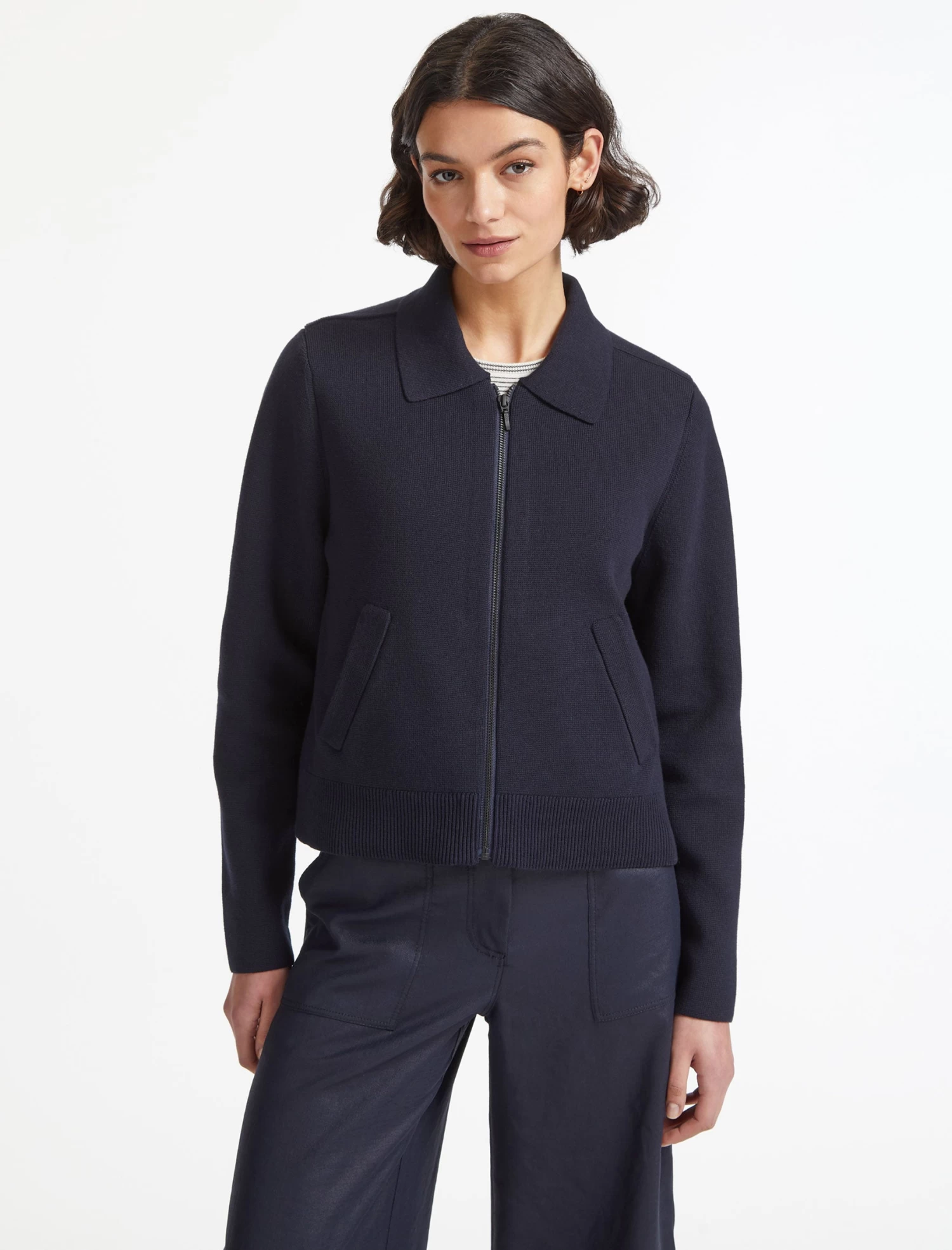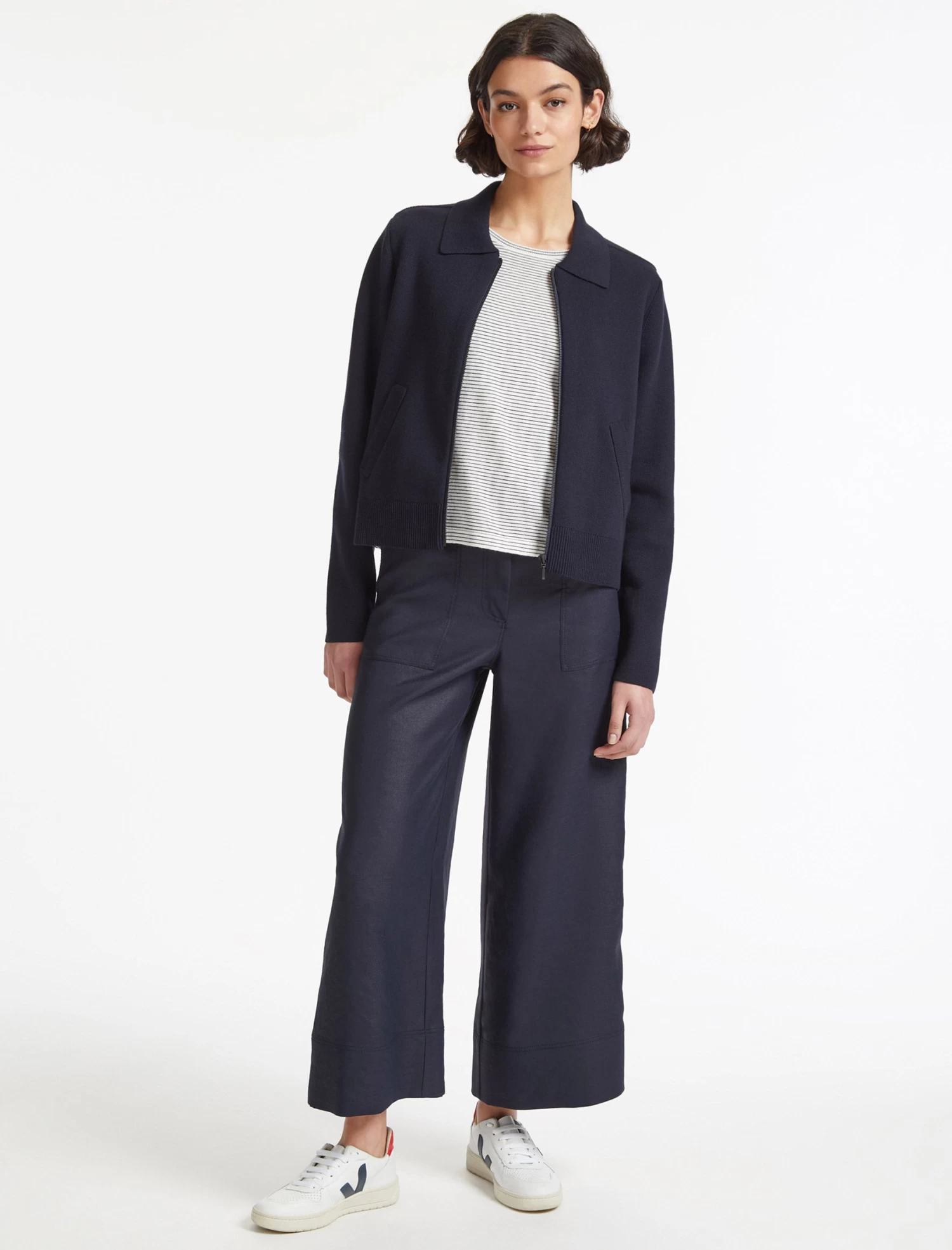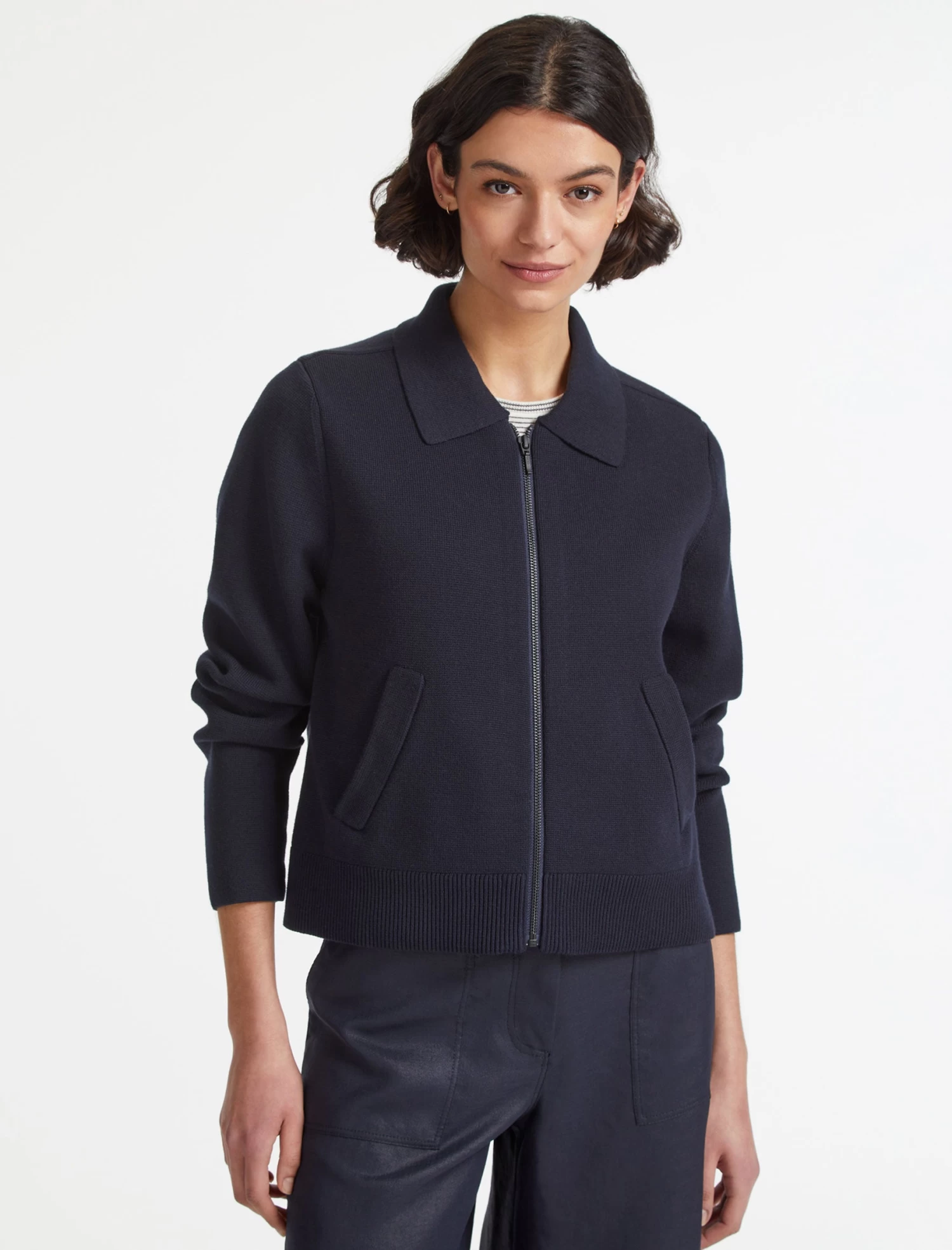 Inspired by a collared bomber design, our Jimmy knit jacket will be one of the hardest-working summer cover-ups in your wardrobe. Designed in a navy blue cotton blend, shrug it on with our utility style Techni-Linen collection – cue our Hayden and Tate wide-legged trouser or Lyla skirt. A versatile, year-round staple that’s the perfect alternative to a jacket – we’ll take one in both colours, please.