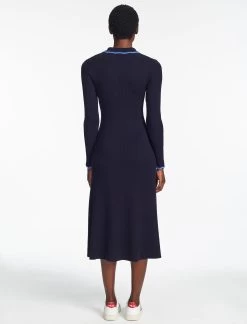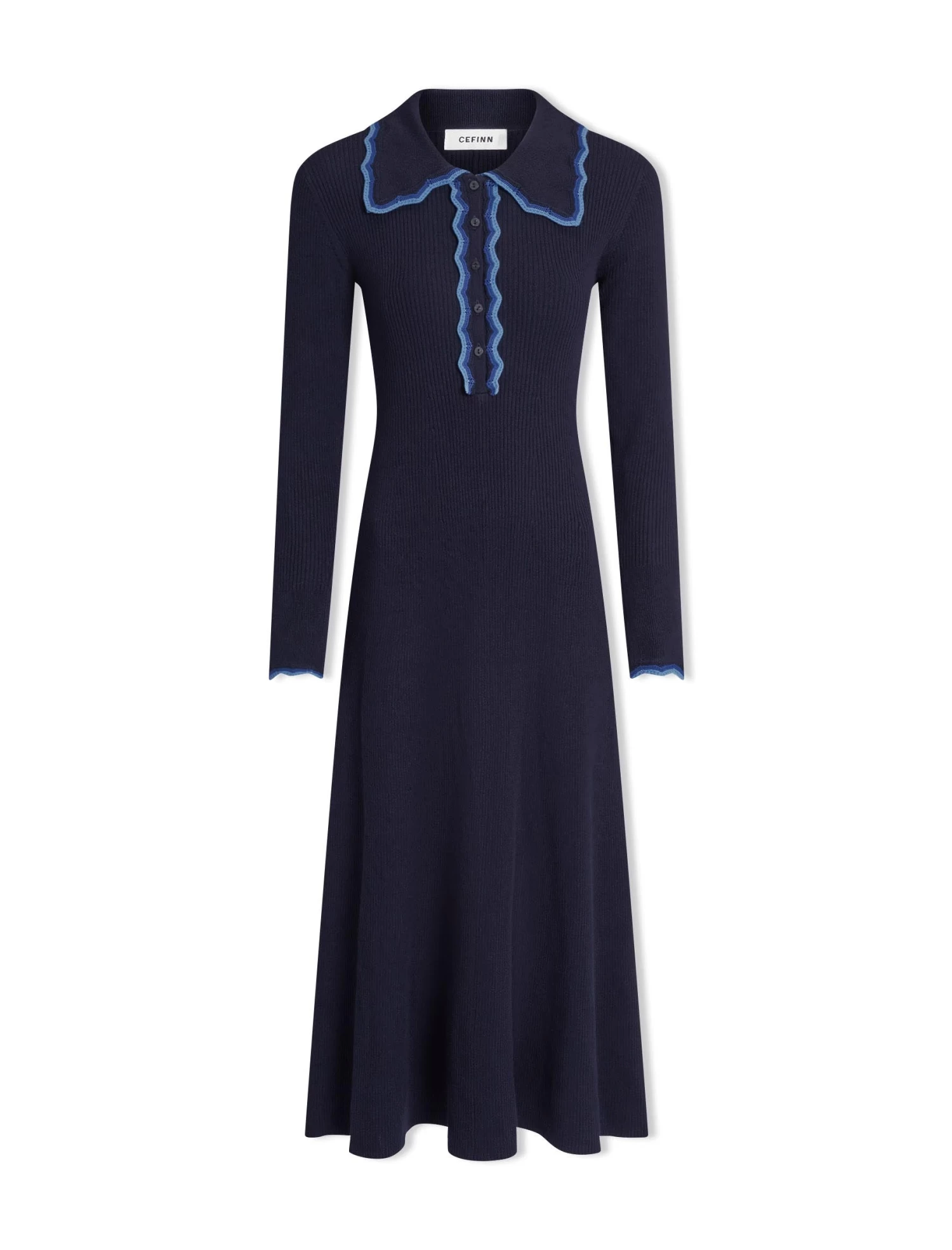 Who doesn’t love the ease of a knitted dress? We’ve revisited our bestselling knitted dress in a wool-and-cotton blend that is the ideal weight and feel when the temperature starts to slowly creep up. A classic Eva shape with Josie’s contrast placket and cuffs give it a contemporary twist.