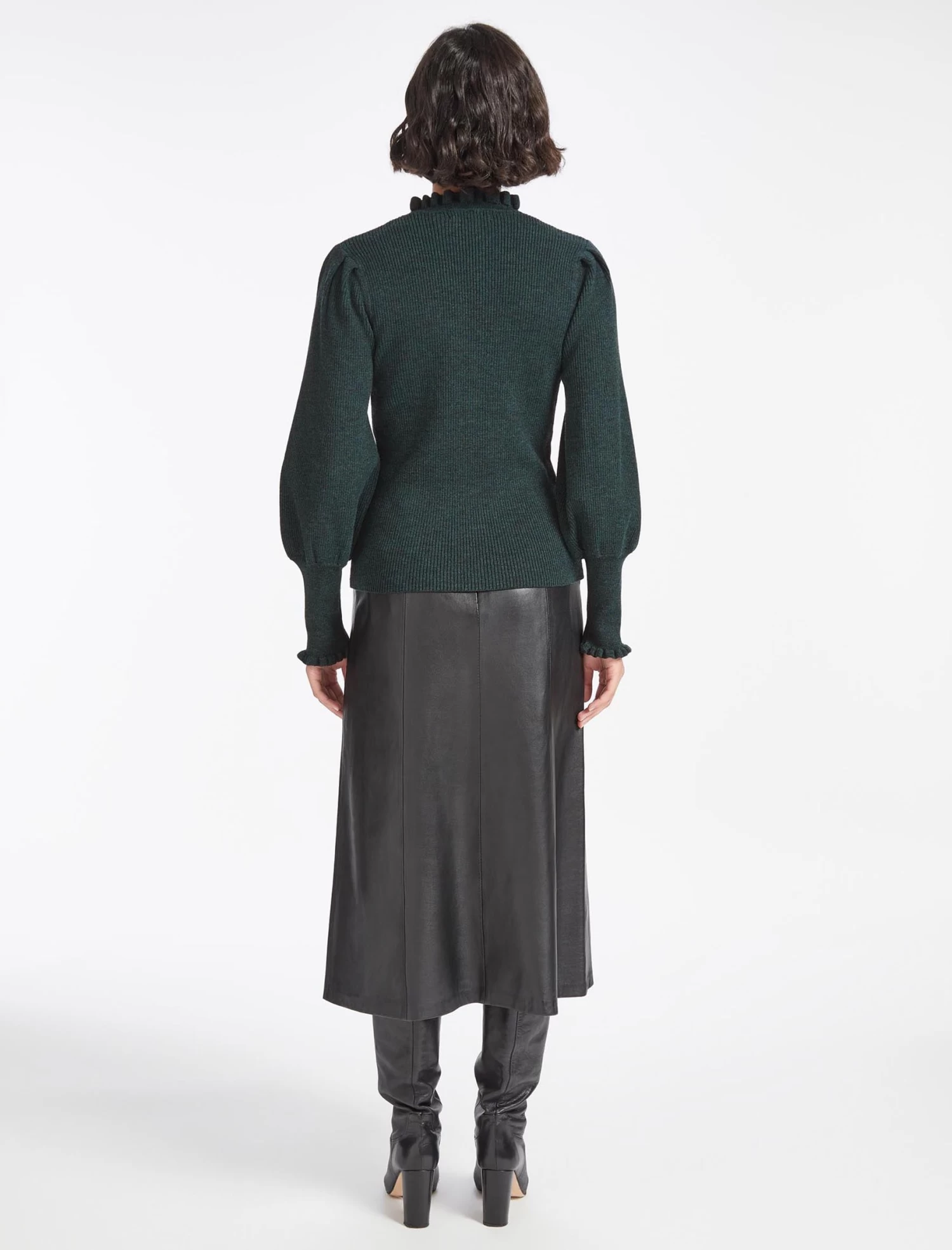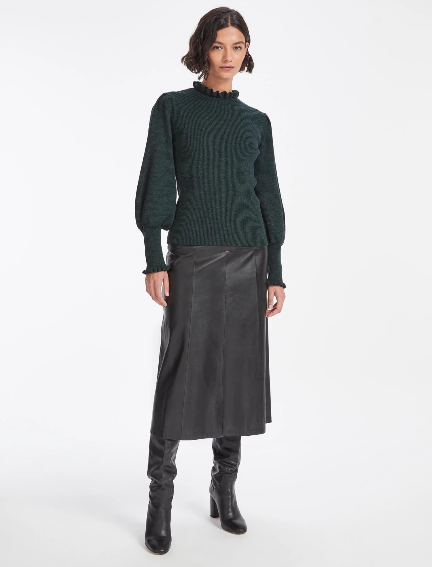 A smart alternative to a polo-neck sweater, Judy is cut from a merino-wool blend with added stretch to create a figure-flattering silhouette. The on-trend frill collar and ribbed blouson sleeve take it from a basic to elevated silhouette. Wear with just about anything in your wardrobe – it’s that easy.