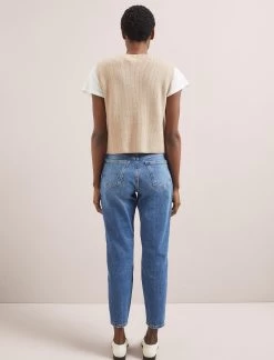A versatile and lightweight alternative to our winter vest knits, Julie is designed in a cotton-and-merino blend that’s soft to the touch and cool on the skin. The wider shoulders and boxier fit mean it can be worn alone or layered over a T-shirt, crisp shirt or silky blouse.