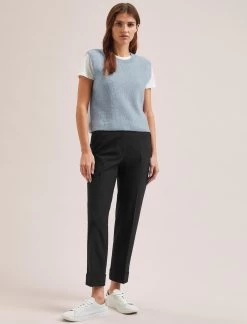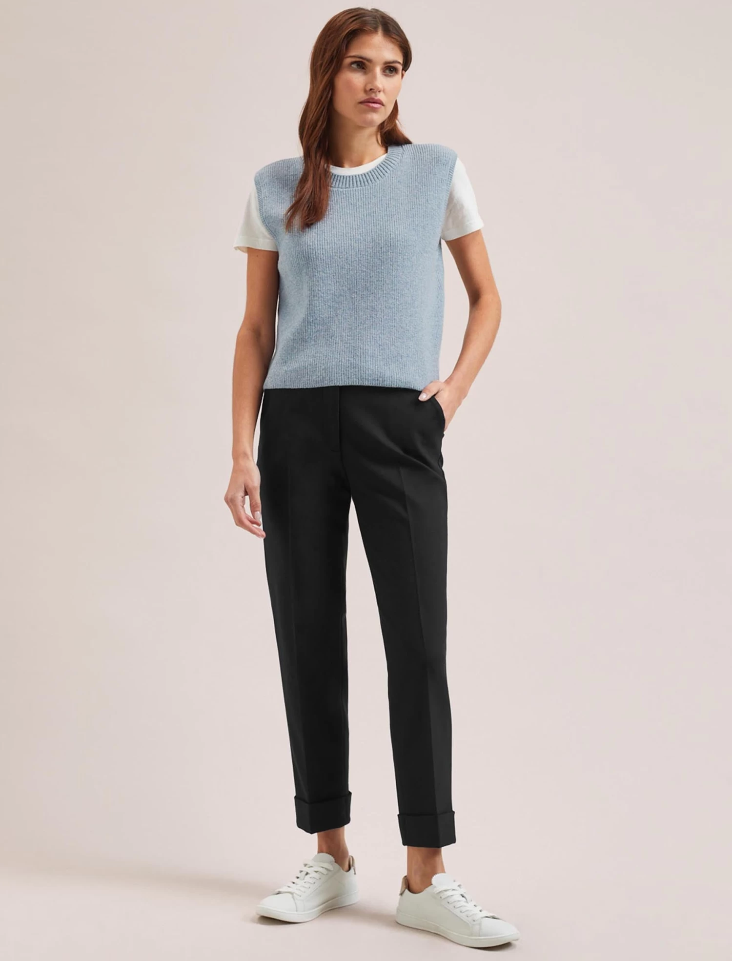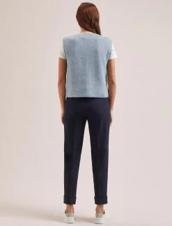 A versatile and lightweight alternative to our winter vest knits, Julie is designed in a cotton-and-merino blend that’s soft to the touch and cool on the skin. The wider shoulders and boxier fit mean it can be worn alone or layered over a T-shirt, crisp shirt or silky blouse.