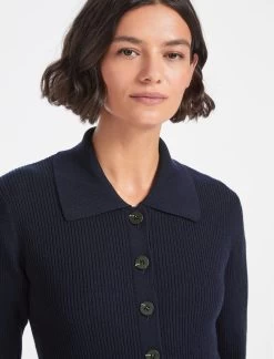 With multiple rib-knit styles weaving their way onto the AW22 catwalks, Kelis is your on-trend cardigan for this season. The ribbed merino-wool blend has added stretch to create a figure-hugging (without being too clingy) silhouette, which can be worn alone or undone over a fine-knit polo top on colder days. Wear in place of a tailored jacket with a suit trouser or our Tiana skirt and a heel, or keep it undone with a T-shirt and jean on downtime days.