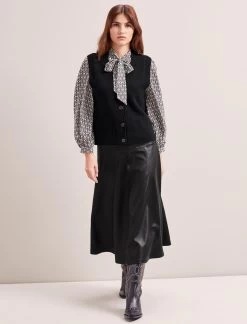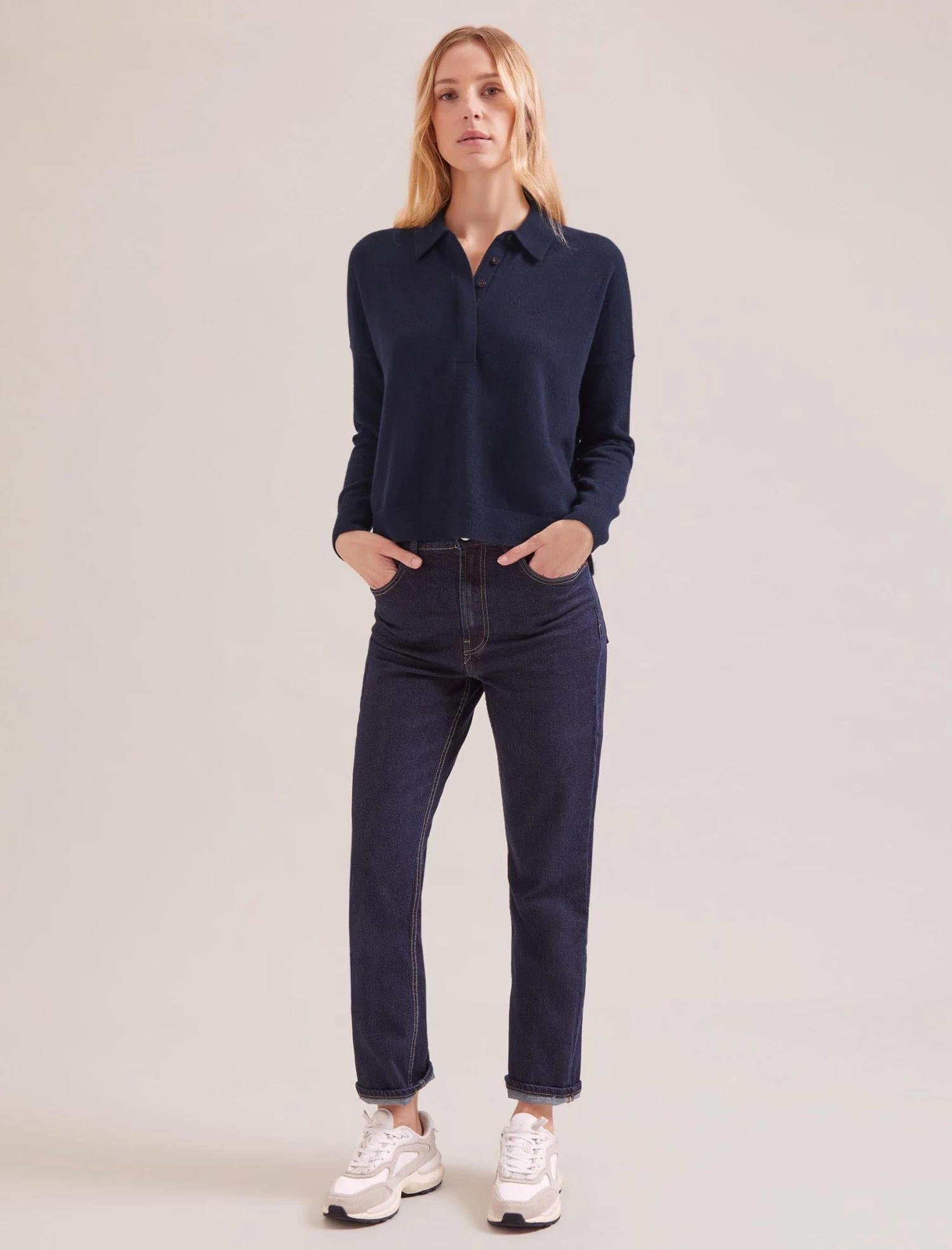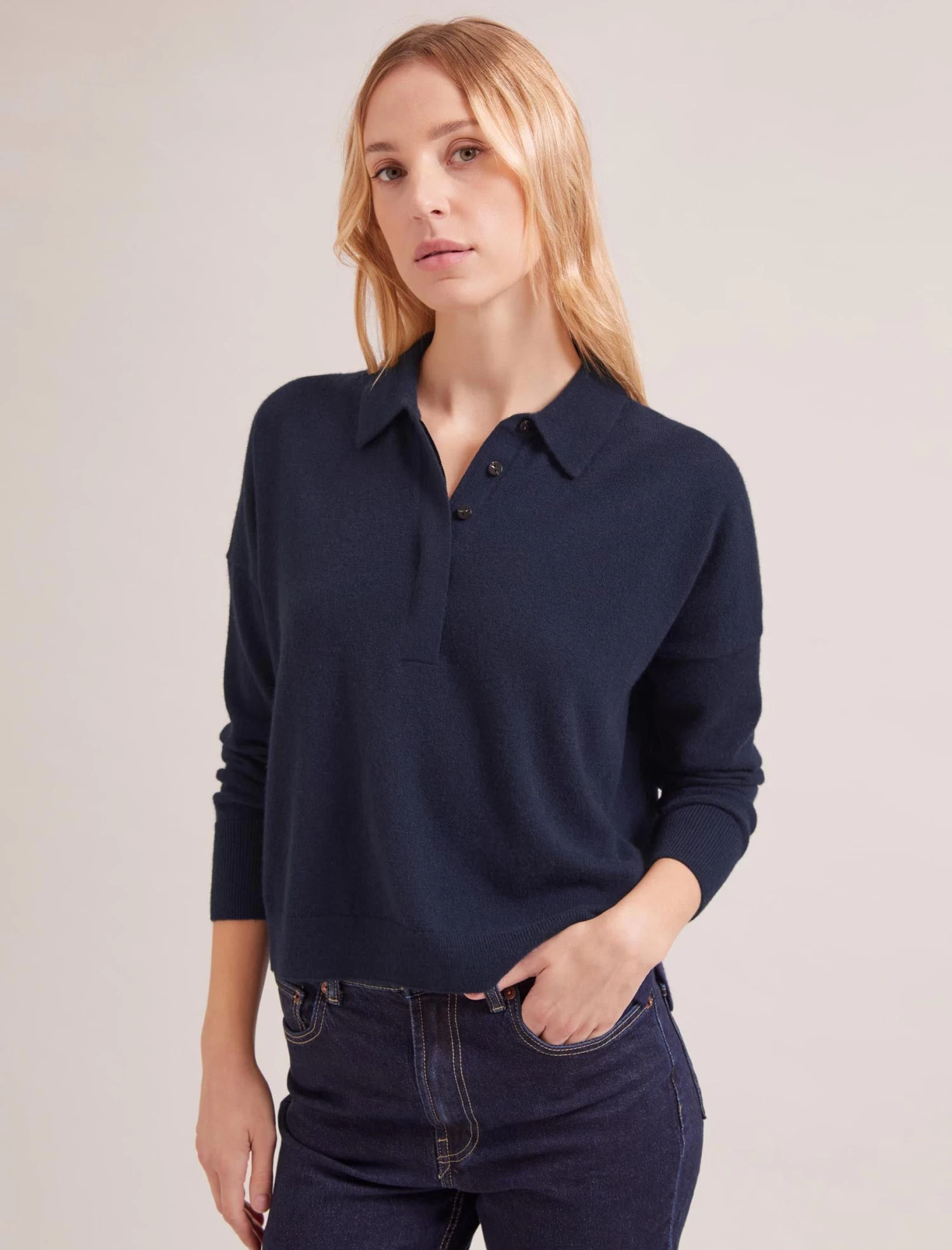 The beauty of cashmere is that it is light enough to take you into spring. Kelly’s loose, boxy shape and lofty texture keep it airy and breathable. The concealed placket and collar give it a smart edge that works well with skirts or a tailored trouser.