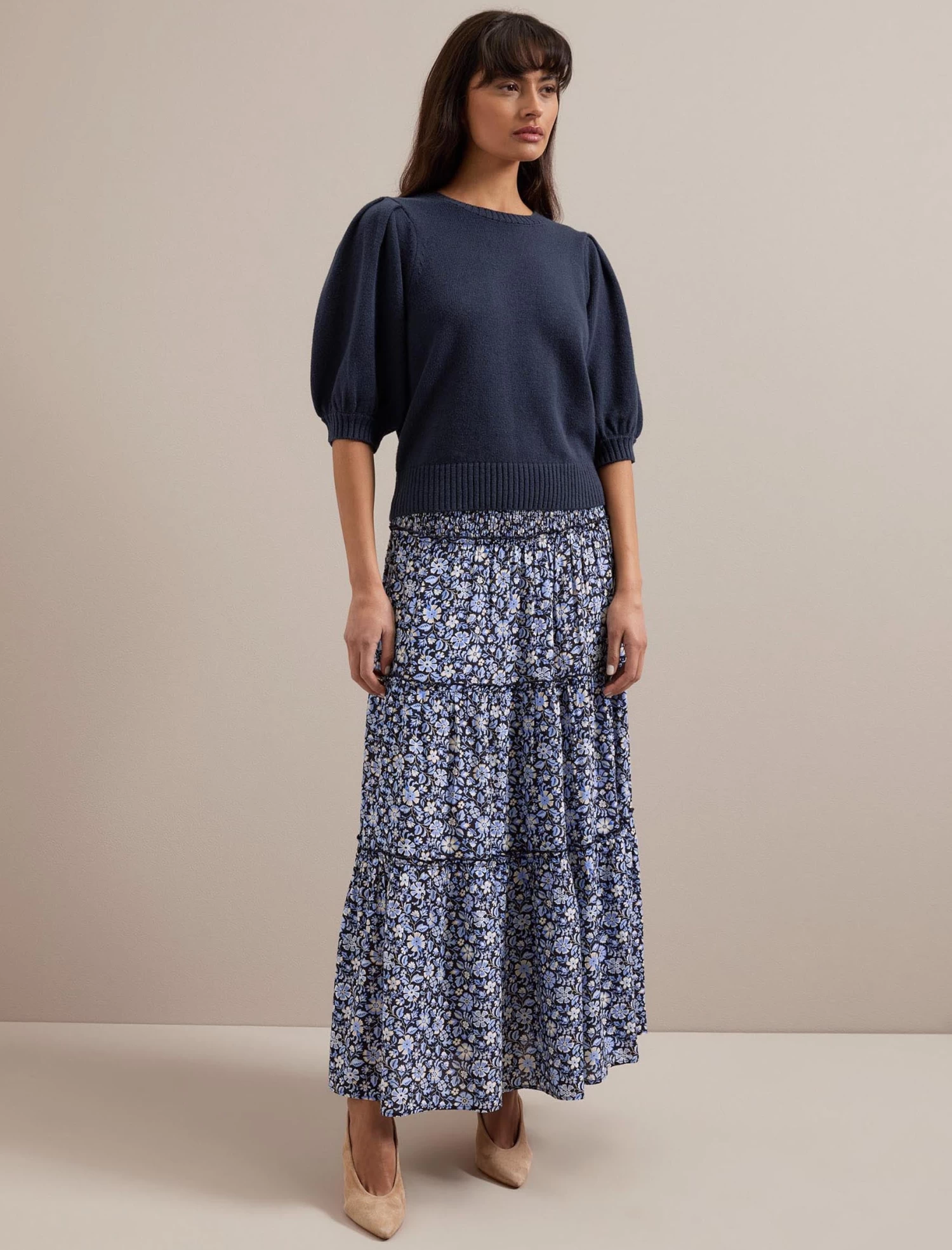 Slip-on styles make summer dressing a breeze and the Kira skirt is a case in point. Designed in a light, airy cotton viscose voile, it’s shirred waist, tiered skirt, baby-locking detailing and feminine floral print add to its charms. Machine washable and effortless to style with white or navy tees and a simple sandal, it will earn a well-deserved place in your summer wardrobe.