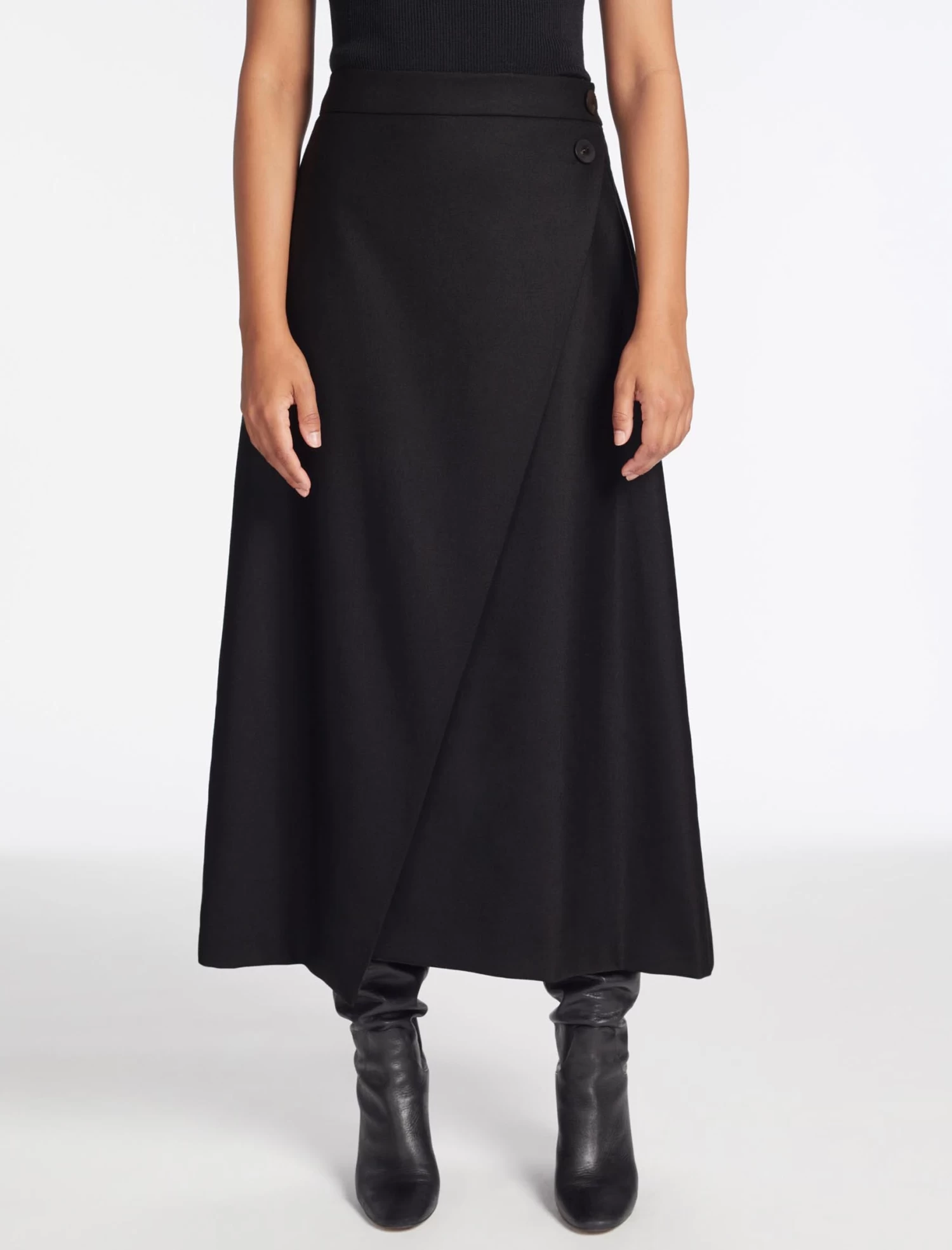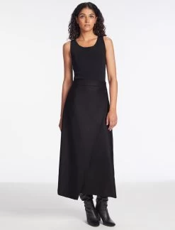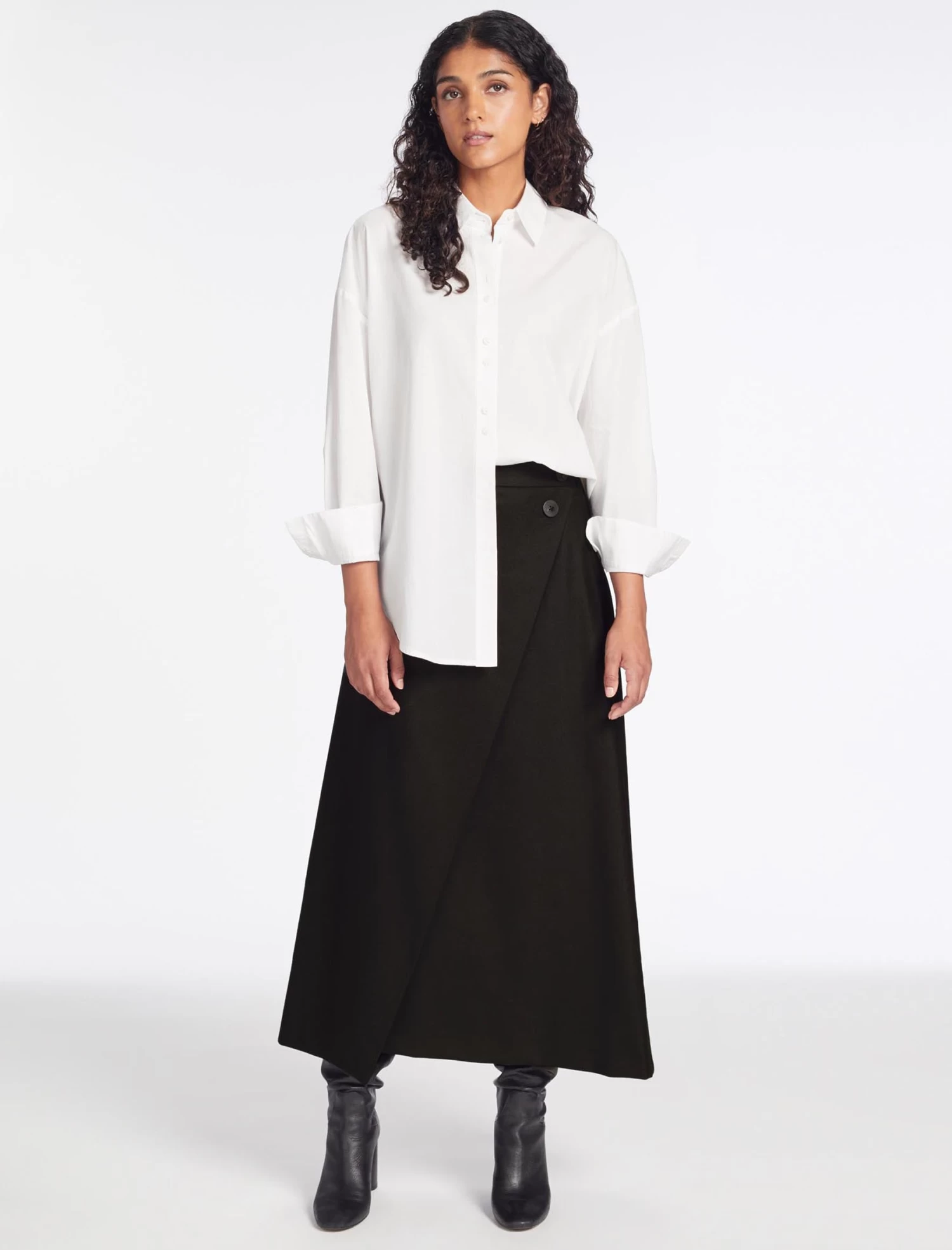 Back by popular demand, the super-cool Layla maxi wrap skirt ticks both the work and play boxes. Designed in our wool suiting fabric with a hint of stretch, the wrap is stitched down so it won’t gape, and it has an elasticated back waist for easy wearability. Style with a crisp white shirt and heeled boot for an on-trend daytime look, dress up with a silk blouse or soften with a pointelle knit.